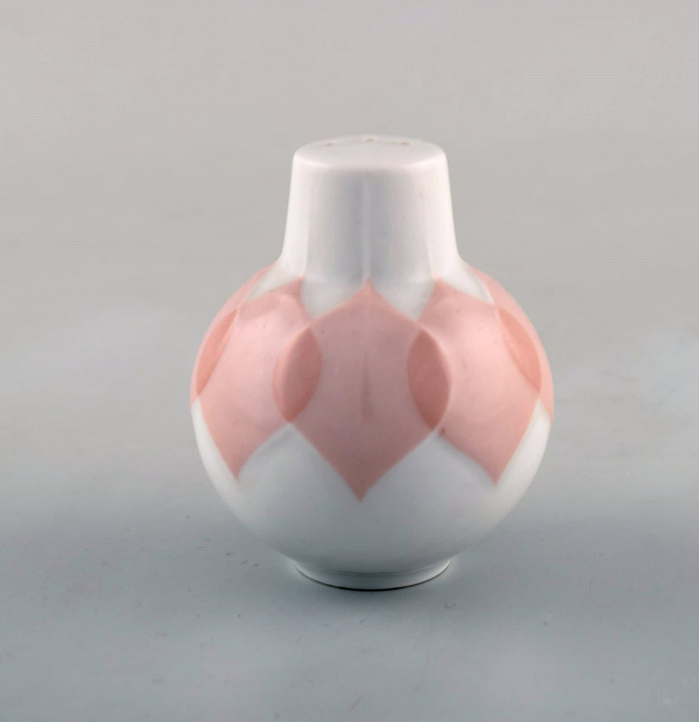 Bjørn Wiinblad for Rosenthal. "Lotus" porcelænsservice. Salt / peber sæt dekoreret med lyserøde lotusblade. 1980'erne. Måler: 6,5 x 5,5 cm. I flot stand. Stemplet.