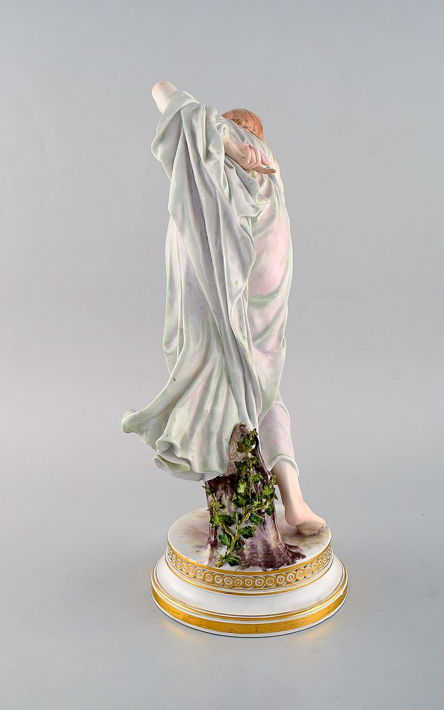 Walter Schott for Meissen. Stor art nouveau porcelænsfigur. "Kvinde med bold". Sjældent malet i lyserødt. Ca. 1900. Måler: 37 x 27 cm. I flot stand. Stemplet. 2. Sortering.