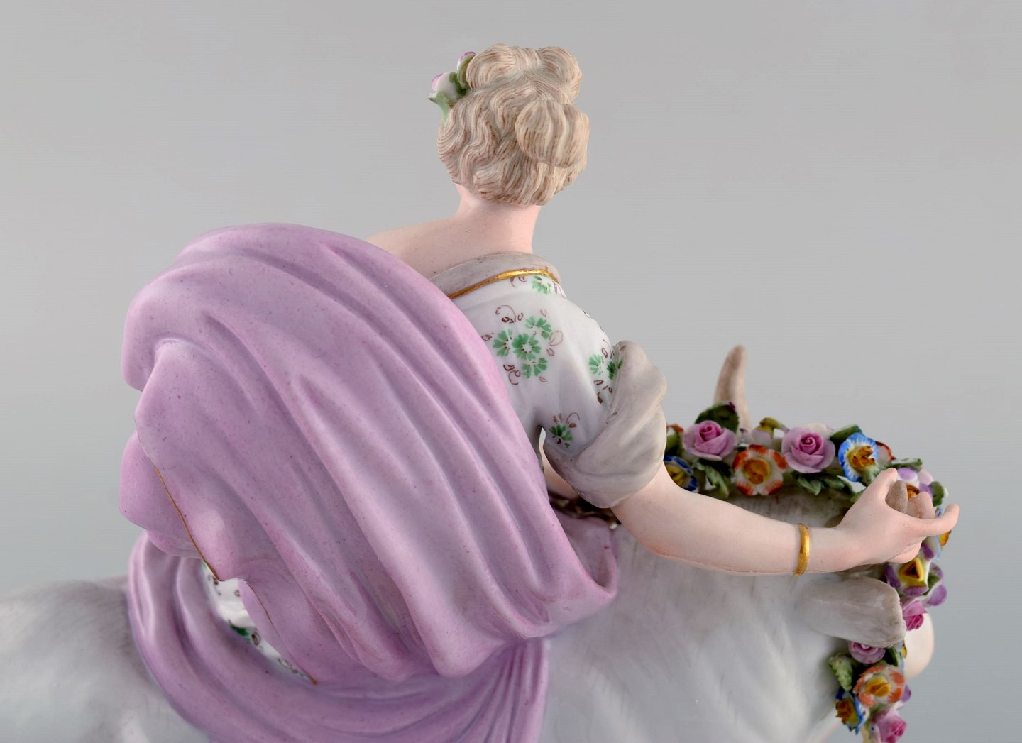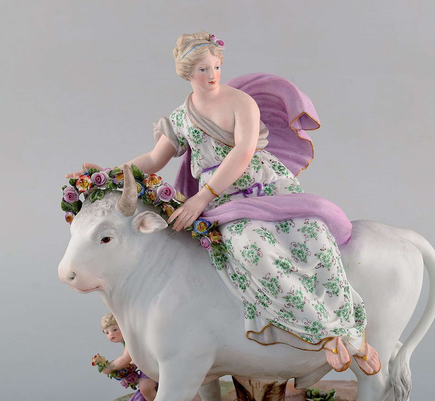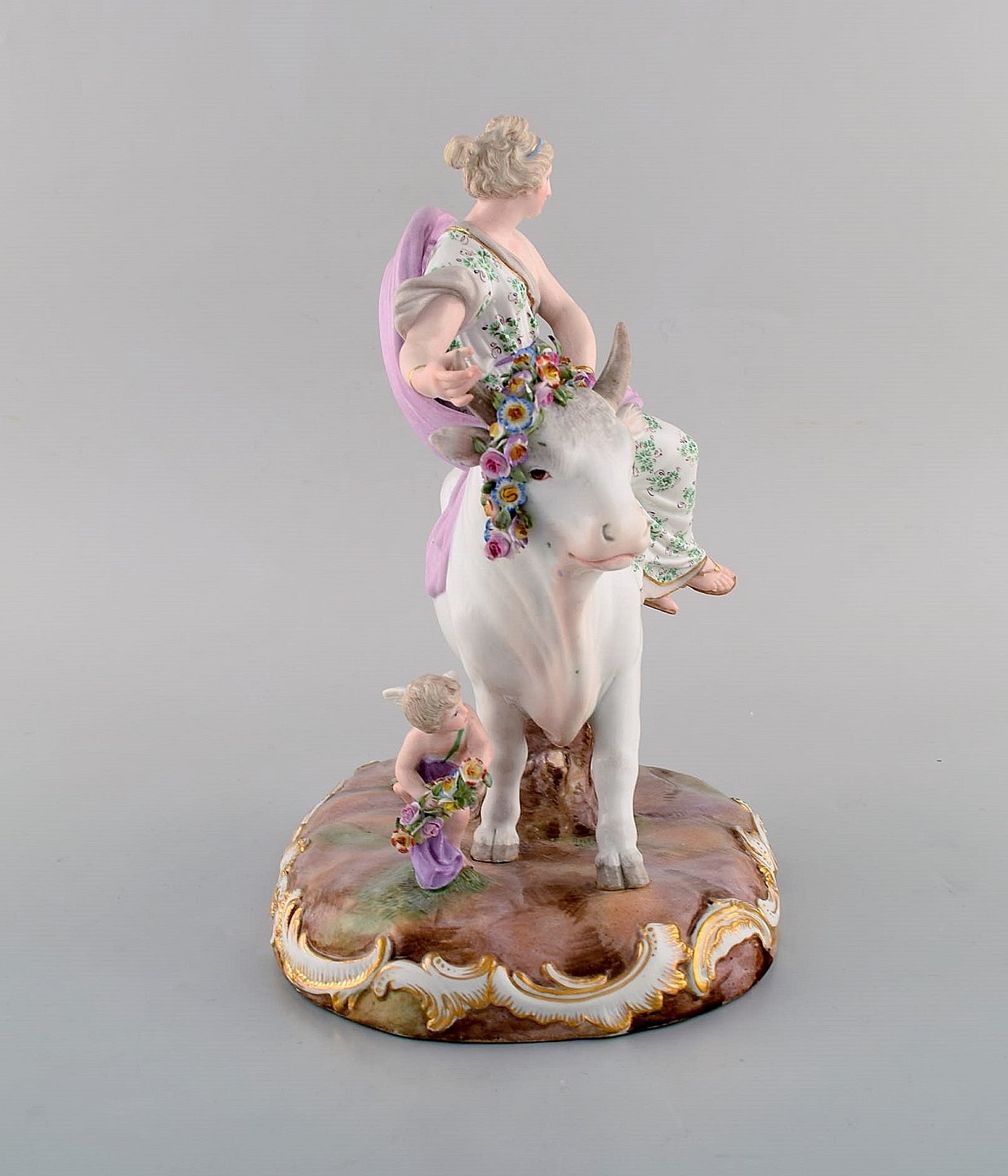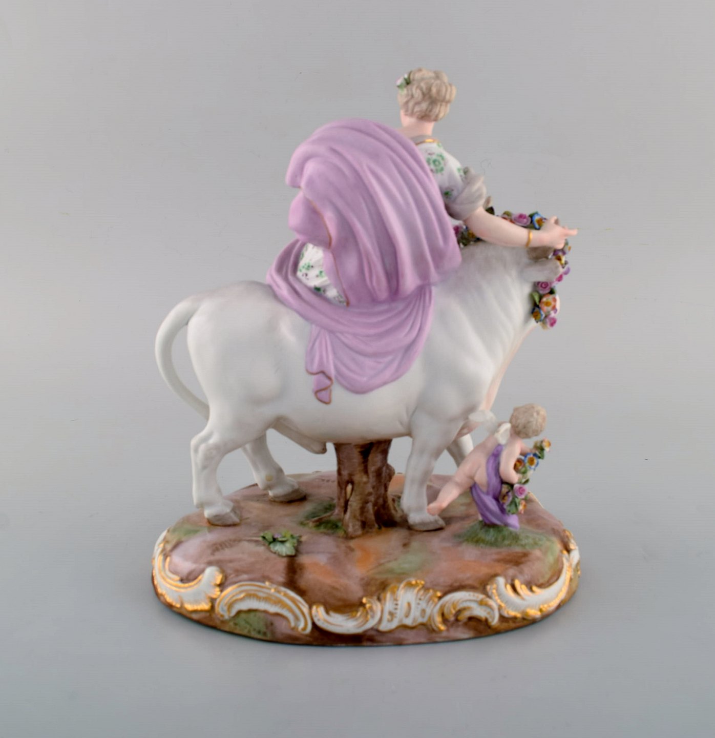 Stor antik Meissen porcelænsfigur. "Europa og Tyren" fra den græske mytologi. Sent 1800-tallet. Måler: 25 x 21 cm. I flot stand. Stemplet. 1. Sortering.