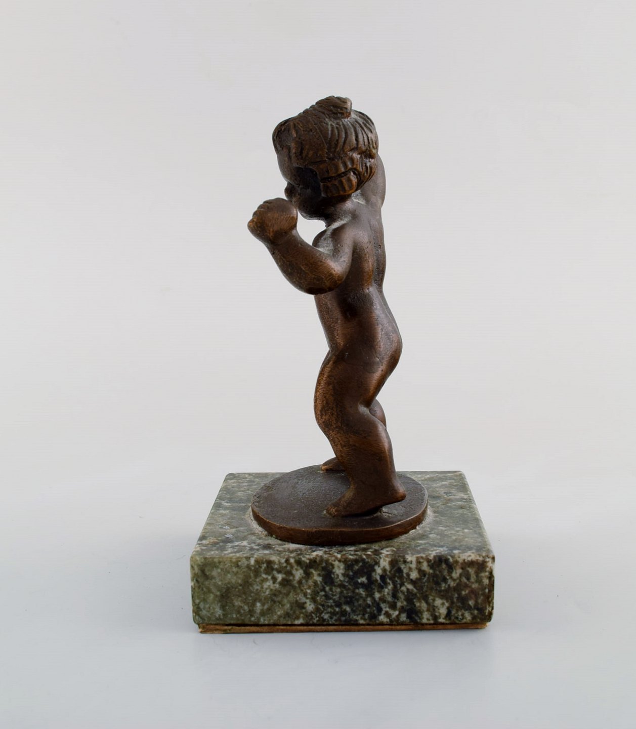 Dansk bronzeskulptur på marmor base. Lille pige. Dateret 1942. Måler: 14,5 x 8 cm. I flot stand.