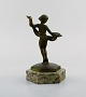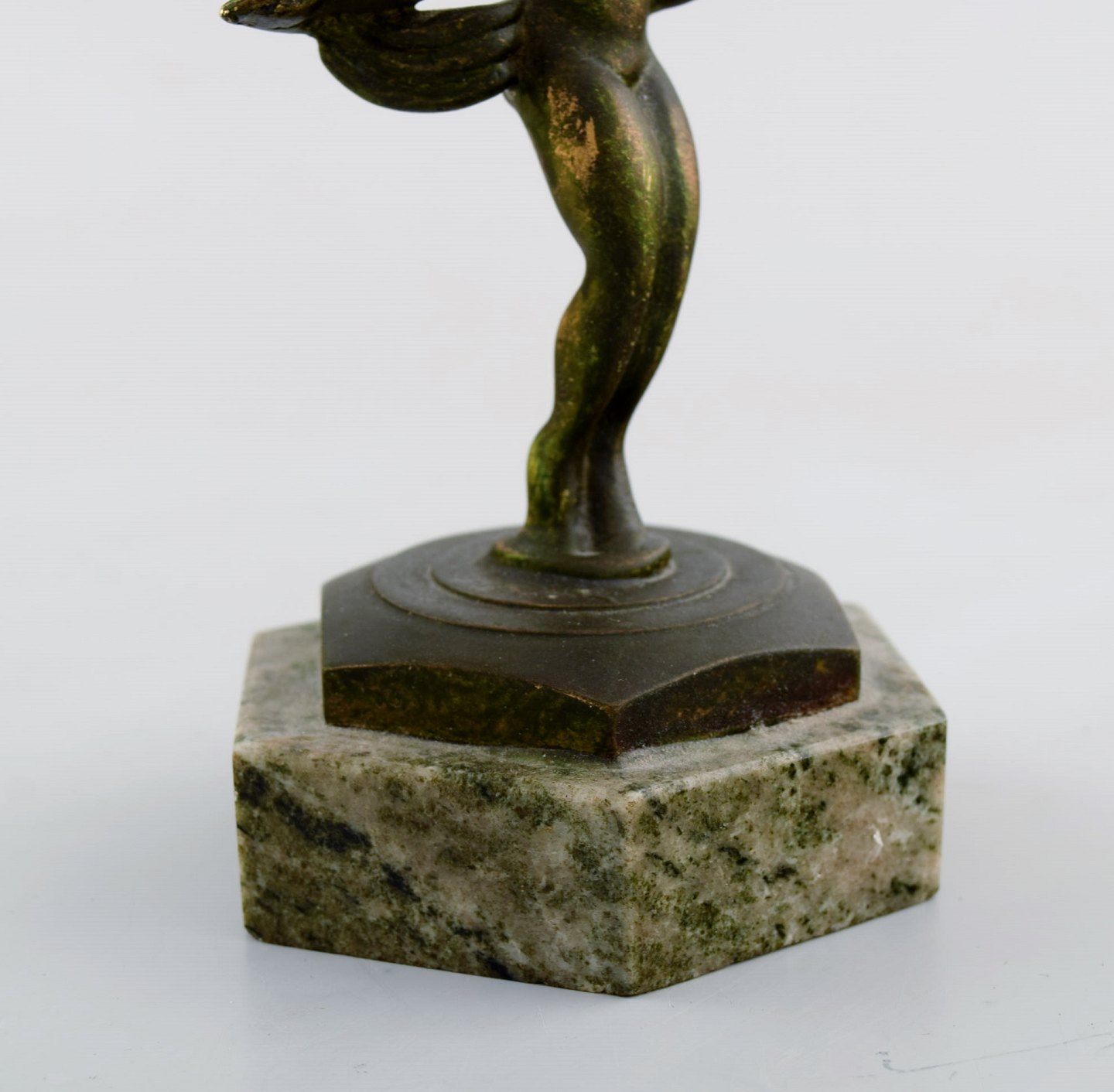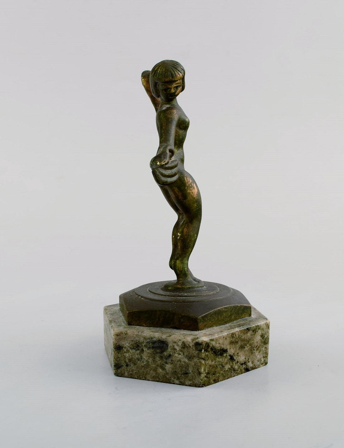 Art deco bronzeskulptur på marmor base. Ung nøgen kvinde med klæde. 1930'erne. Måler: 13,5 x 8 cm. I flot stand.