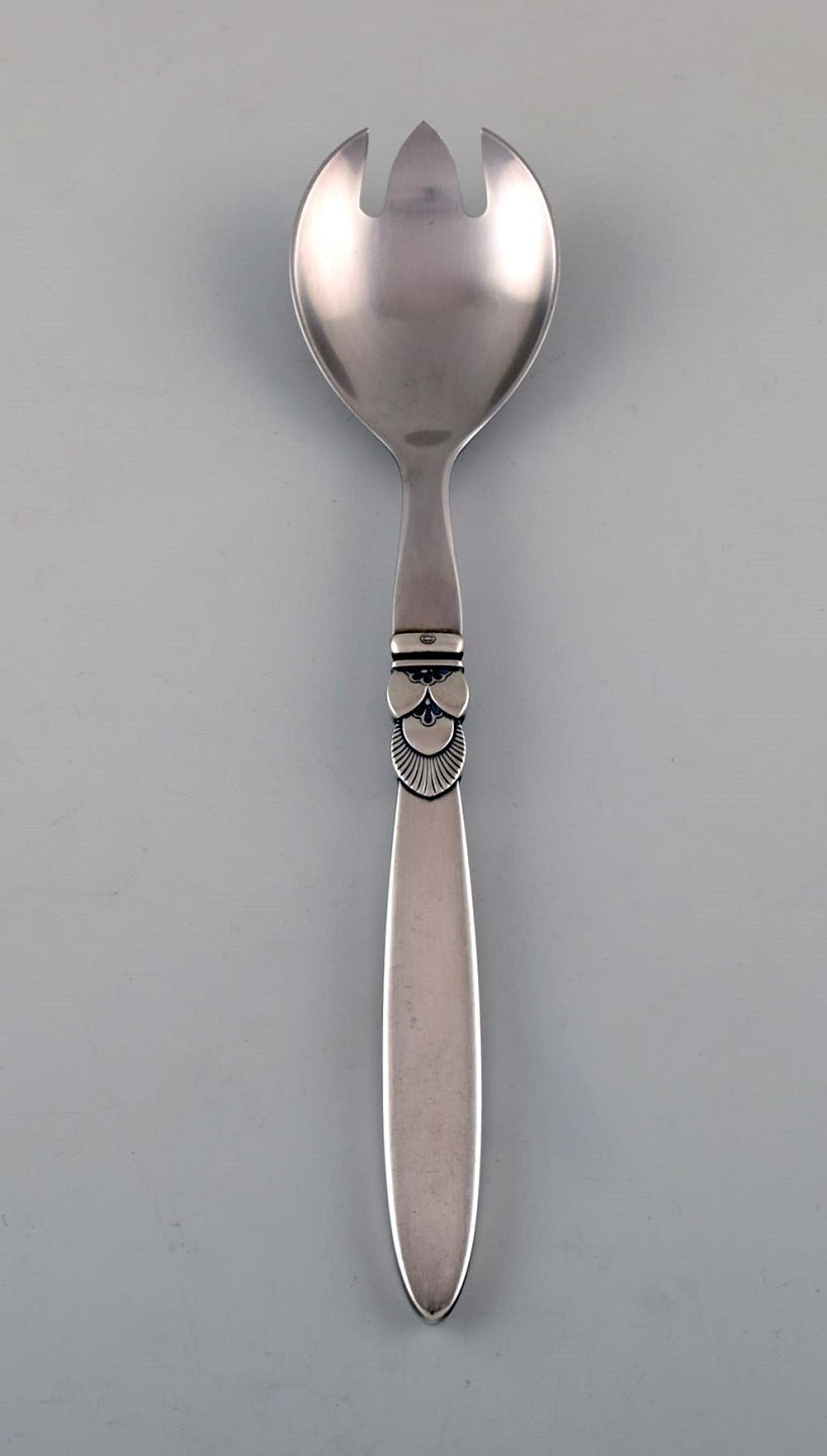 Stort Georg Jensen "Kaktus" salatsæt i sterlingsølv og rustfrit stål.