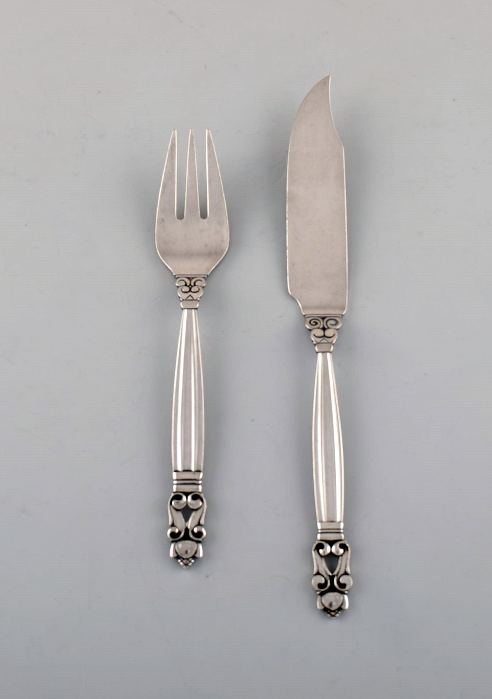 Georg Jensen "Konge" fiskebestik i sterlingsølv. Komplet service til seks personer. Fiskekniven måler: 21 cm. I flot stand. Stemplet.