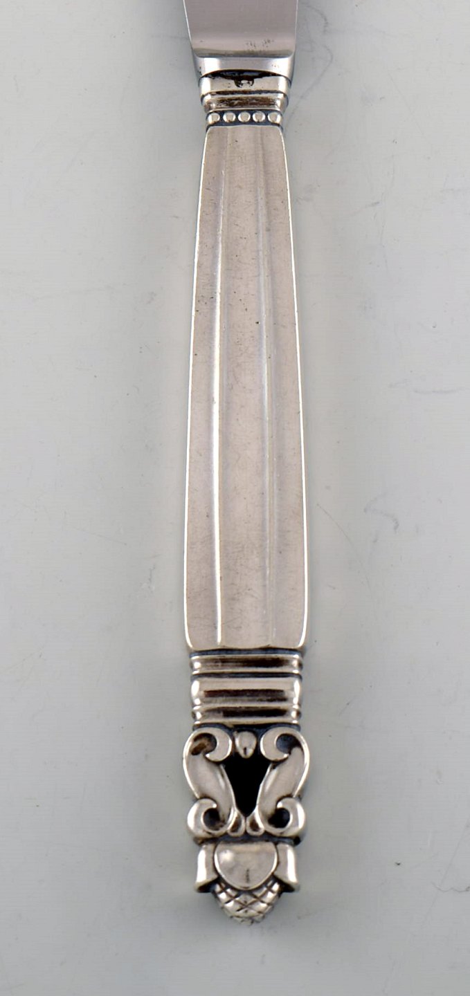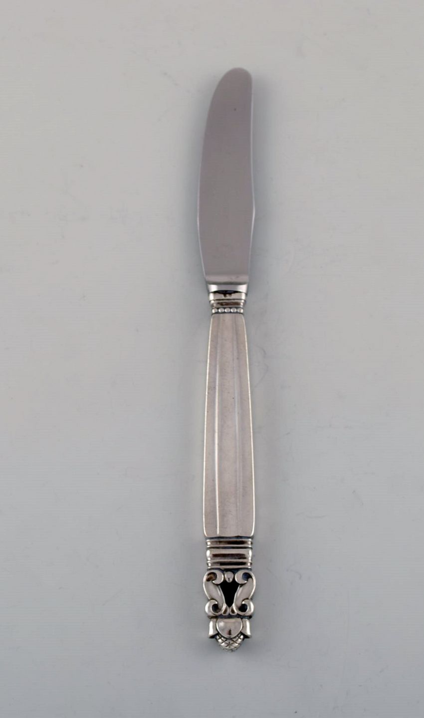 Georg Jensen "Konge" frokostkniv i sterlingsølv og rustfrit stål. Designer: Johan Rohde. Længde: 20,5 cm. Stemplet. I flot stand.