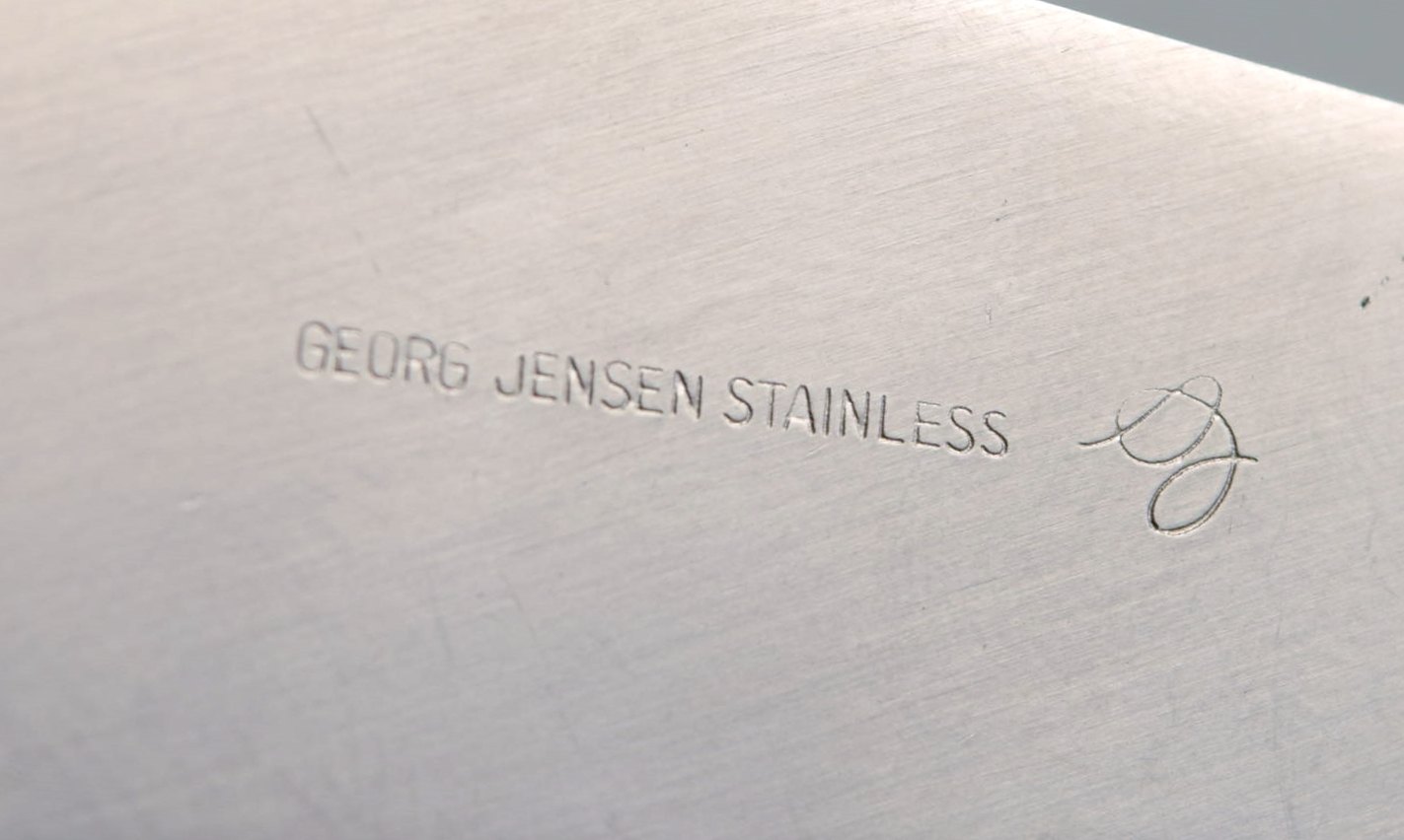 Arne Jacobsen for Georg Jensen. Modernistisk "AJ bestik" spade i rustfrit stål. Sent 1900-tallet. Måler: 25 x 5 cm. I flot stand. Stemplet.