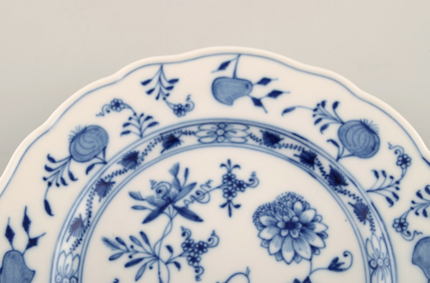Otte antikke Meissen "Løgmønstret" tallerkener i håndmalet porcelæn. Tidligt 1900-tallet.