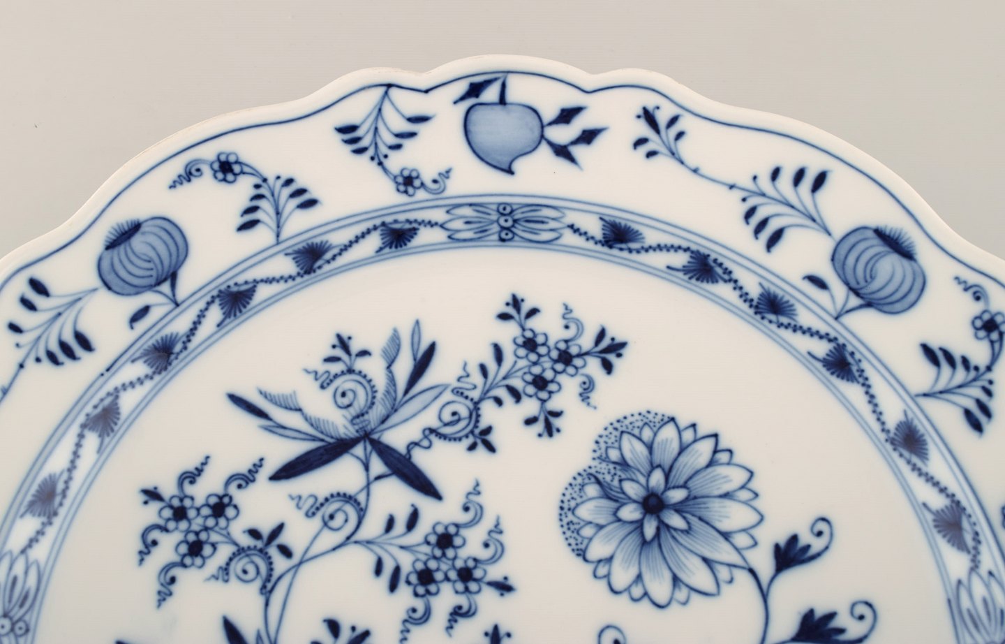 Stor antik Meissen "Løgmønstret" skål / fad i håndmalet porcelæn. Tidligt 1900-tallet.