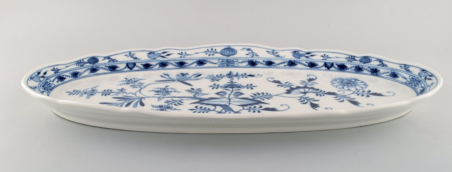 Kolossalt Antikt Meissen "Løgmønstret" fiskefad i håndmalet porcelæn. Tidligt 1900-tallet.