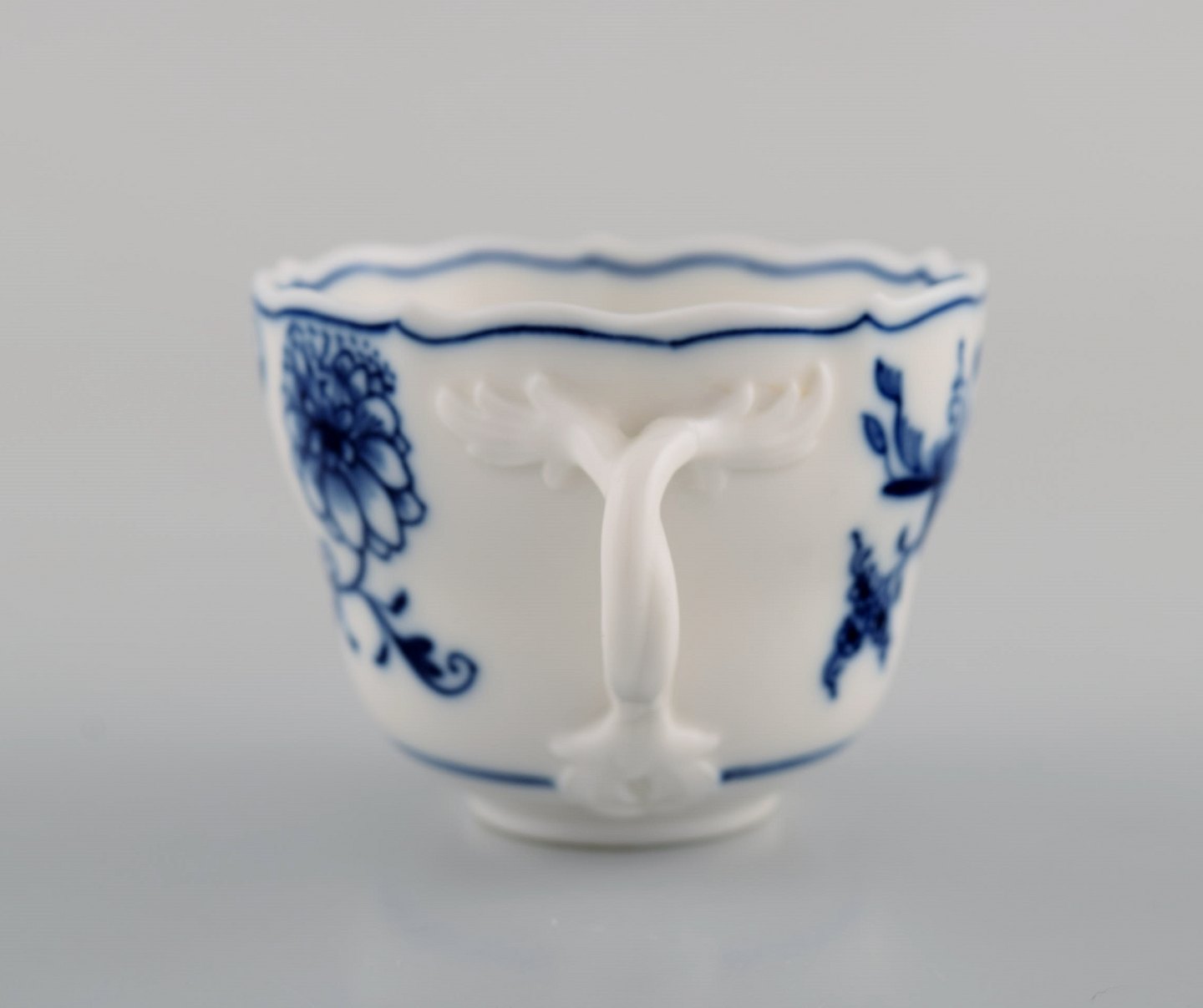 Fire antikke Meissen "Løgmønstret" kaffekopper med underkop i håndmalet porcelæn. Tidligt 1900-tallet.