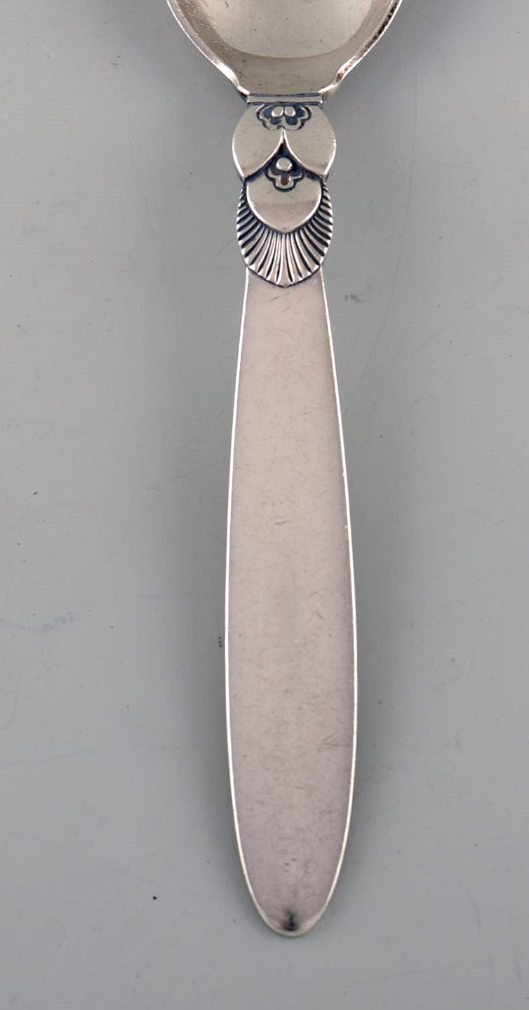 Georg Jensen "Kaktus" barnesæt i sterlingsølv. Ske og gaffel. Dateret 1933-44. Designer: Gundorph Albertus. Længde: 15 cm. Stemplet. I flot stand.