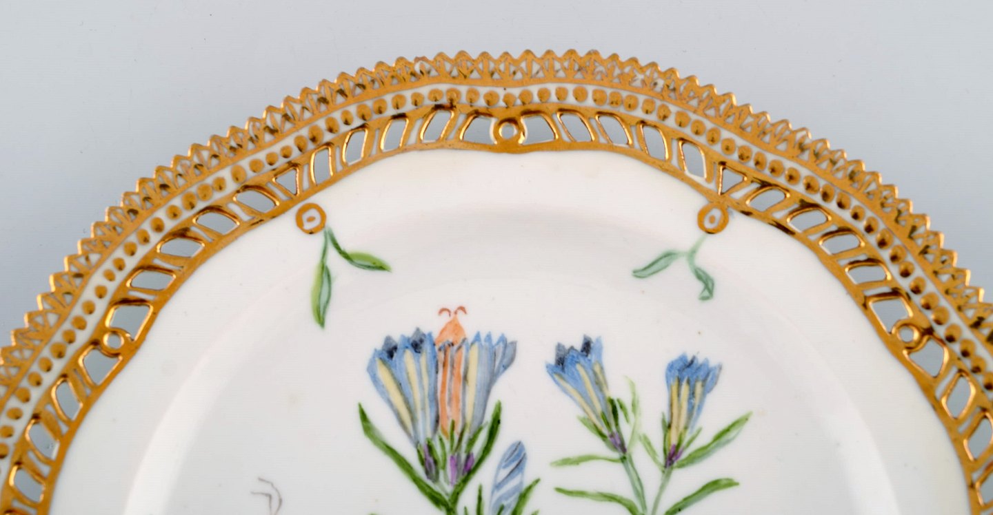 Royal Copenhagen gennembrudt flora danica tallerken i håndmalet porcelæn. Dateret 1947-49.