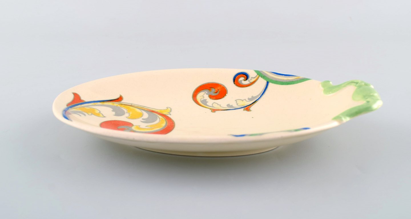 Clarice Cliff (1899-1963), England. To art deco Syren skåle/fade i håndmalet porcelæn. Ca. 1940. Måler: 20 x 13,5 cm. I flot stand. Stemplet.