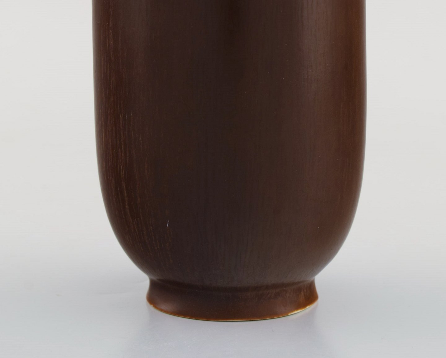 Berndt Friberg for Gustavsberg. Modernistisk vase i keramik. Smuk glasur i brune nuancer. 1960'erne. I flot stand. Måler: 24 x 8,5 cm. Stemplet.