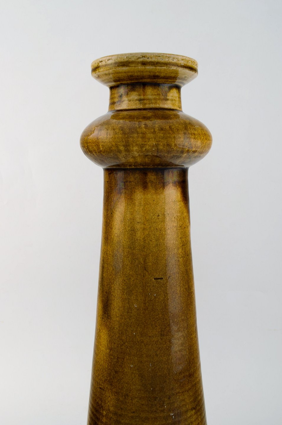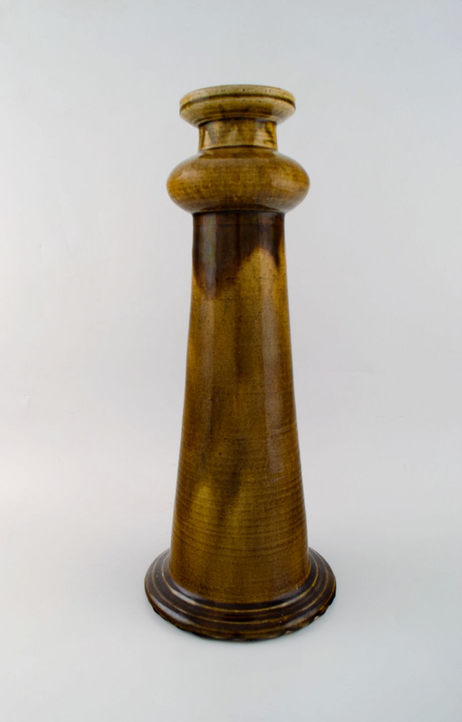 Nils Kähler for Kähler, HAK. Kolossal lysestage i glaseret keramik. Smuk uranglasur. 1960'erne. Måler: 48 x 20,5 cm. Stemplet. I flot stand.