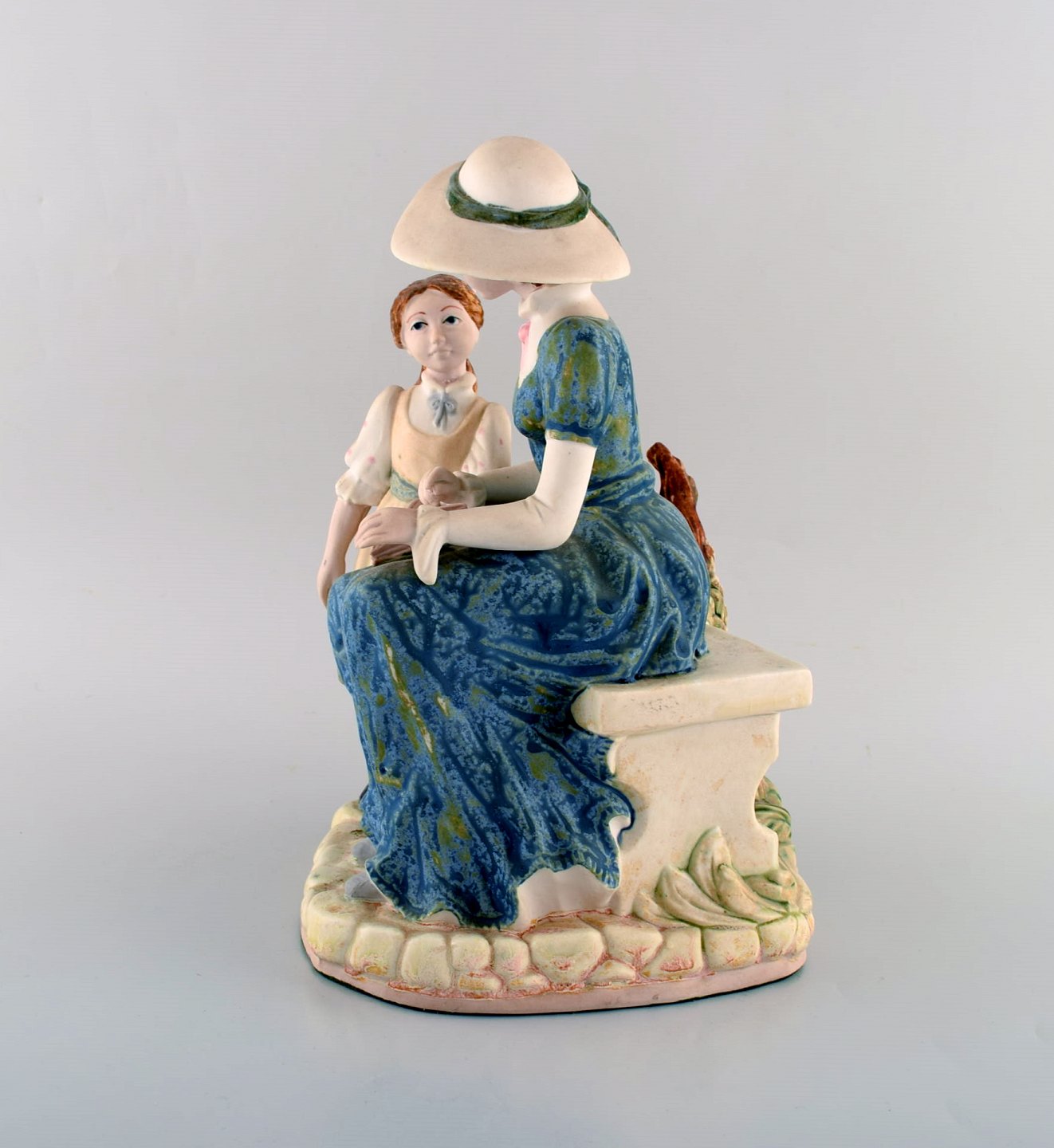PAL, Spanien. Stor skulptur i glaseret keramik. Mor med datter. 1980'erne.