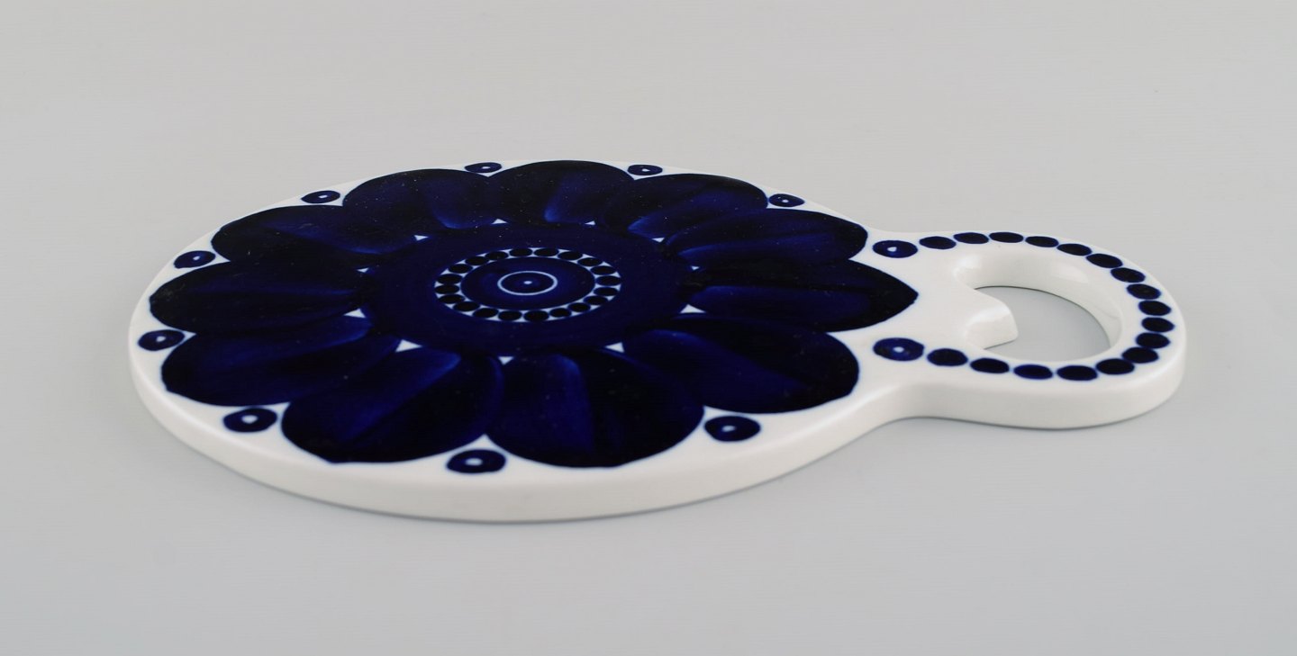 Ulla Procope for Arabia. Valencia smørrebrik i porcelæn dekoreret med blå blomst. 1960/70'erne.