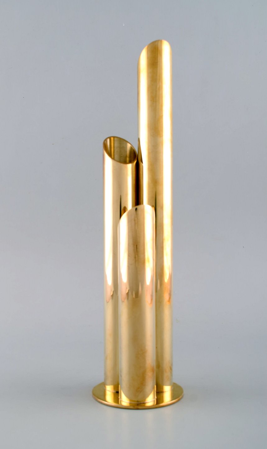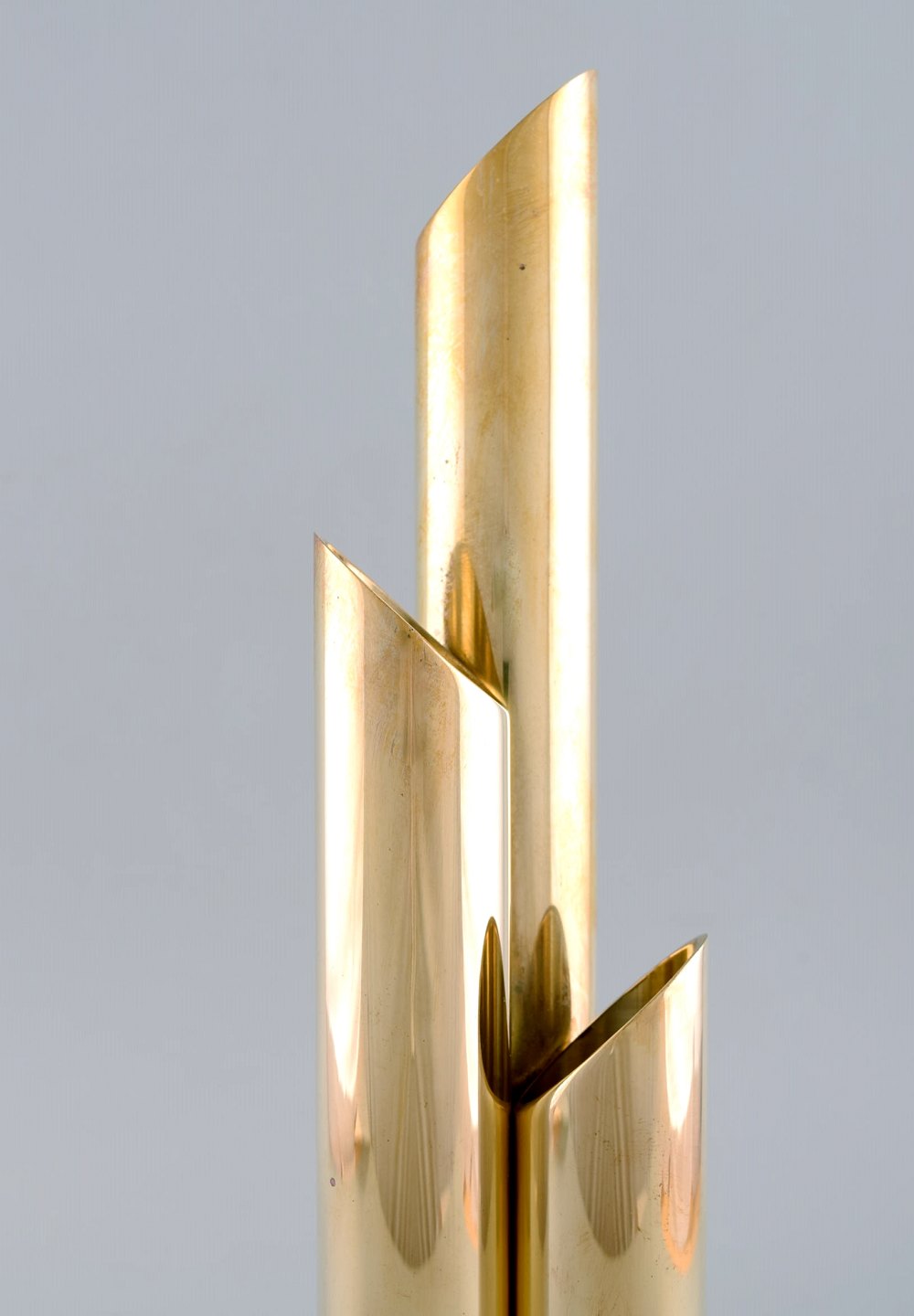 Ivar Ålenius Björk for Skultuna. Et par modernistiske Tatlin vaser i messing. 2000-tallet. Måler: 31 x 8,2 cm. I flot stand. Stemplet.
