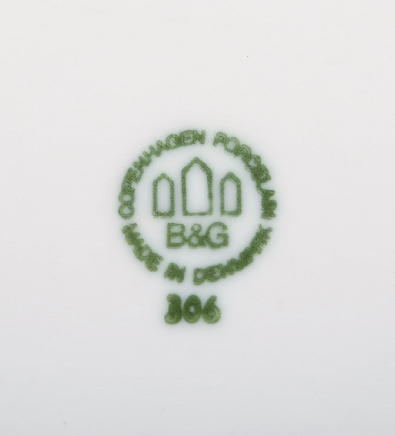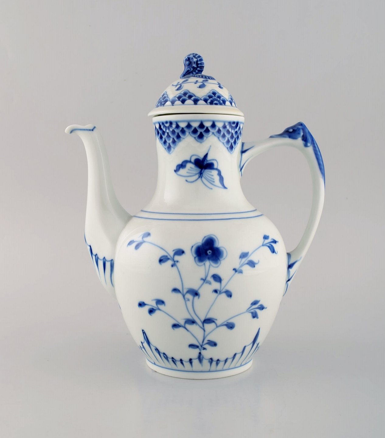 Bing & Grøndahl / B&G, "Sommerfugl". Komplet kaffeservice i håndmalet porcelæn til otte personer med kaffekande, flødekande og tallerkener.