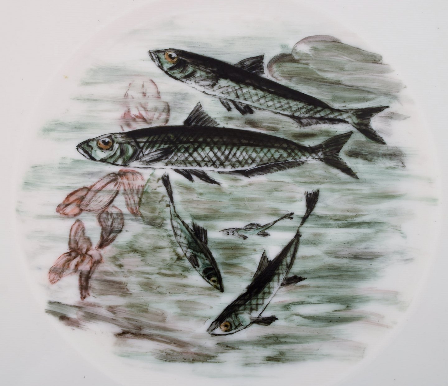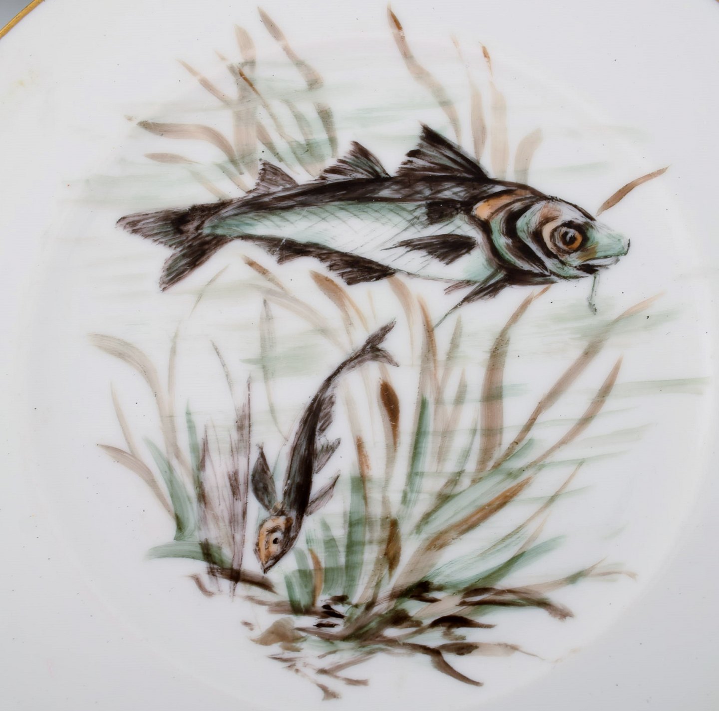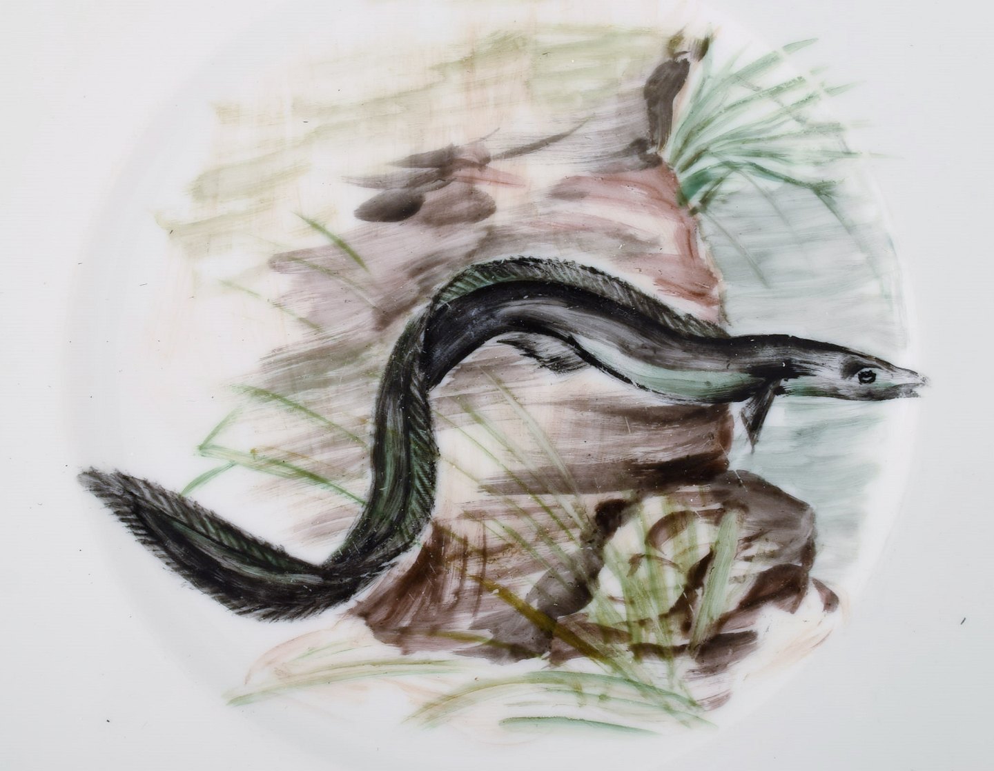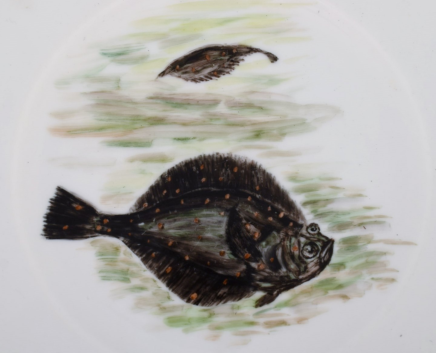 Bing & Grøndahl / B&G. Fem tallerkener i håndmalet porcelæn med fiskemotiver. 1920'erne. Måler: 21,5 cm. I flot stand. Stemplet.