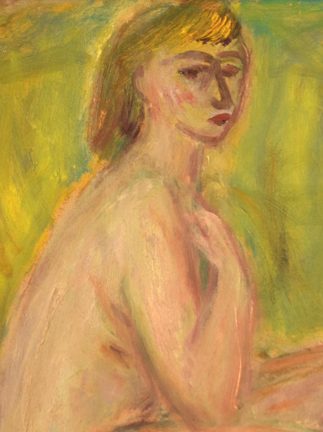 Pär Lindblad (f. 1907, d.1981), svensk kunstner. Olie på plade. "Modell". Nøgen kvinde. Dateret 1949. Pladen måler: 40 x 32 cm. Rammen måler: 5 cm. Signeret og dateret. I flot stand.
