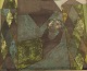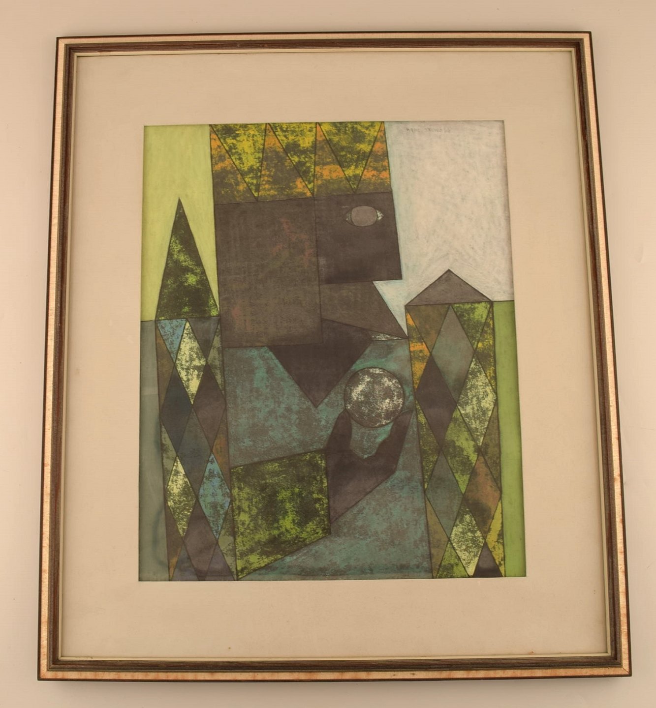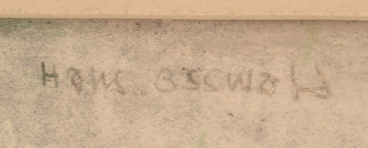 Hans Osswald (1919-1983), svensk kunstner. Olie på plade. Modernistisk komposition. Midt 1900-tallet. Lysmål: 43 x 35 cm. Signeret. I flot stand.