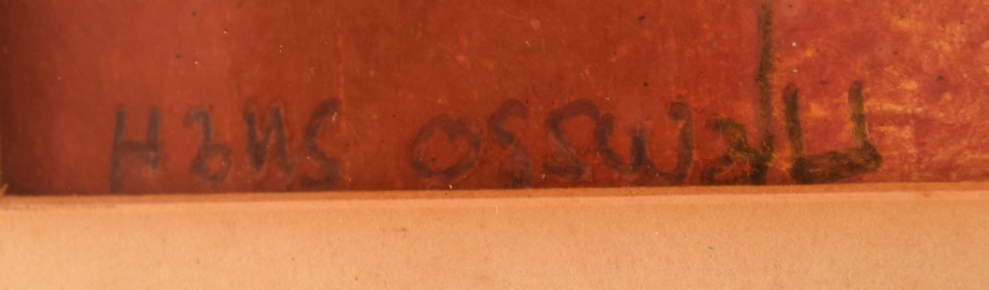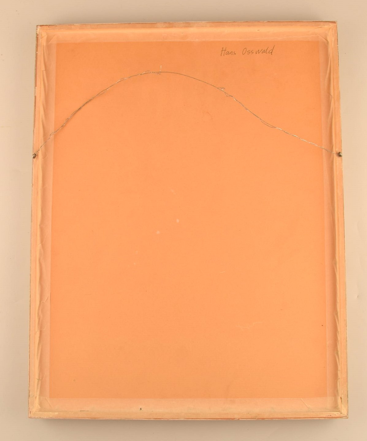Hans Osswald (1919-1983), svensk kunstner. Olie på plade. Modernistisk komposition. Midt 1900-tallet. Lysmål: 35 x 26 cm. Signeret. I flot stand.