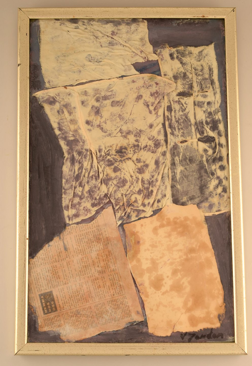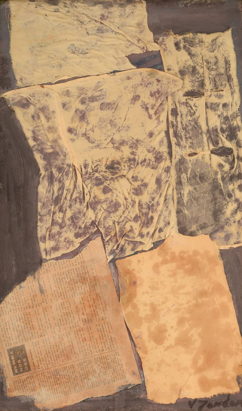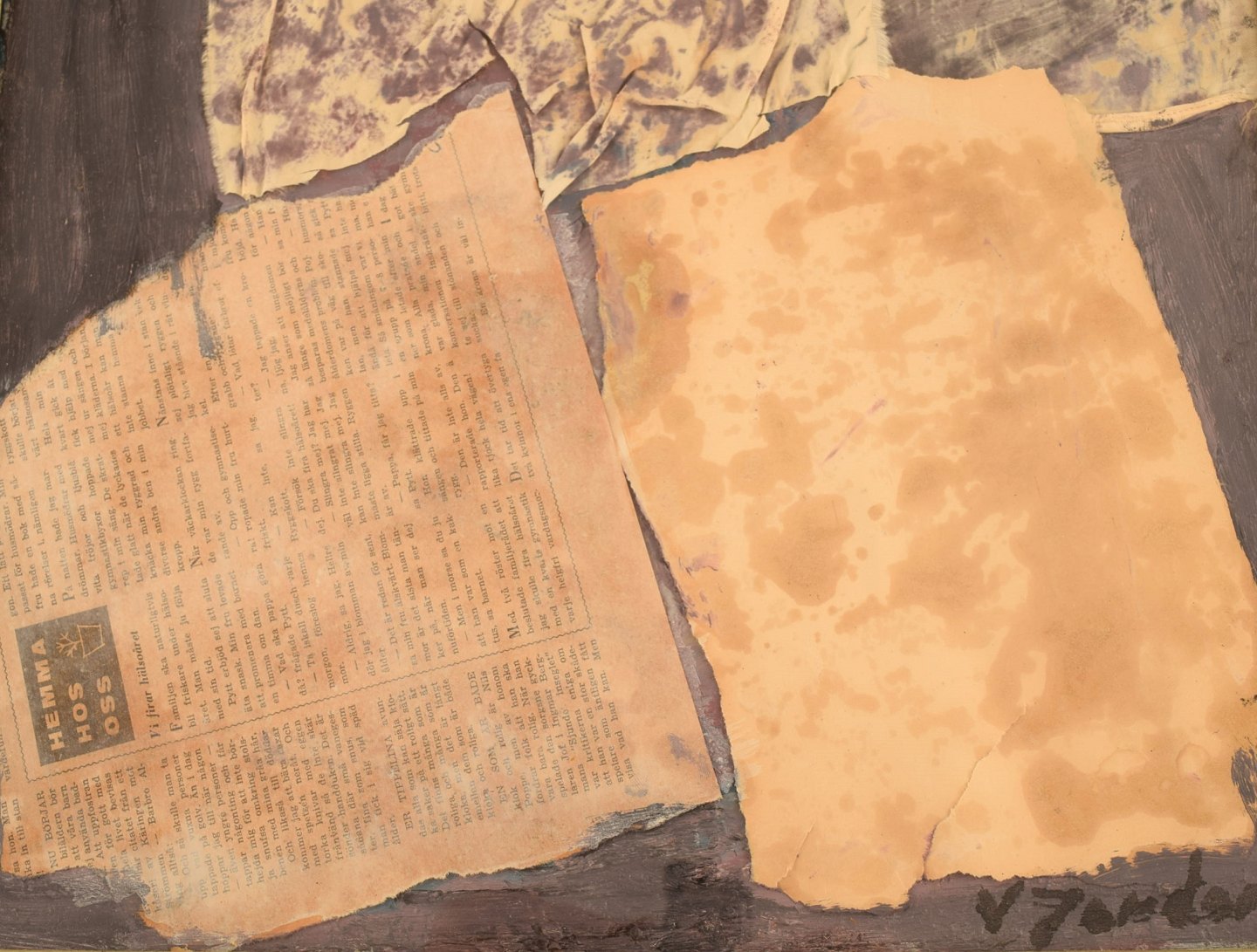 Valdemar Jordan (1925-2004), svensk kunstner. Collage. Sent 1900-tallet. Pladen måler: 58 x 35 cm. rammen måler: 2 cm. Signeret. I flot stand.