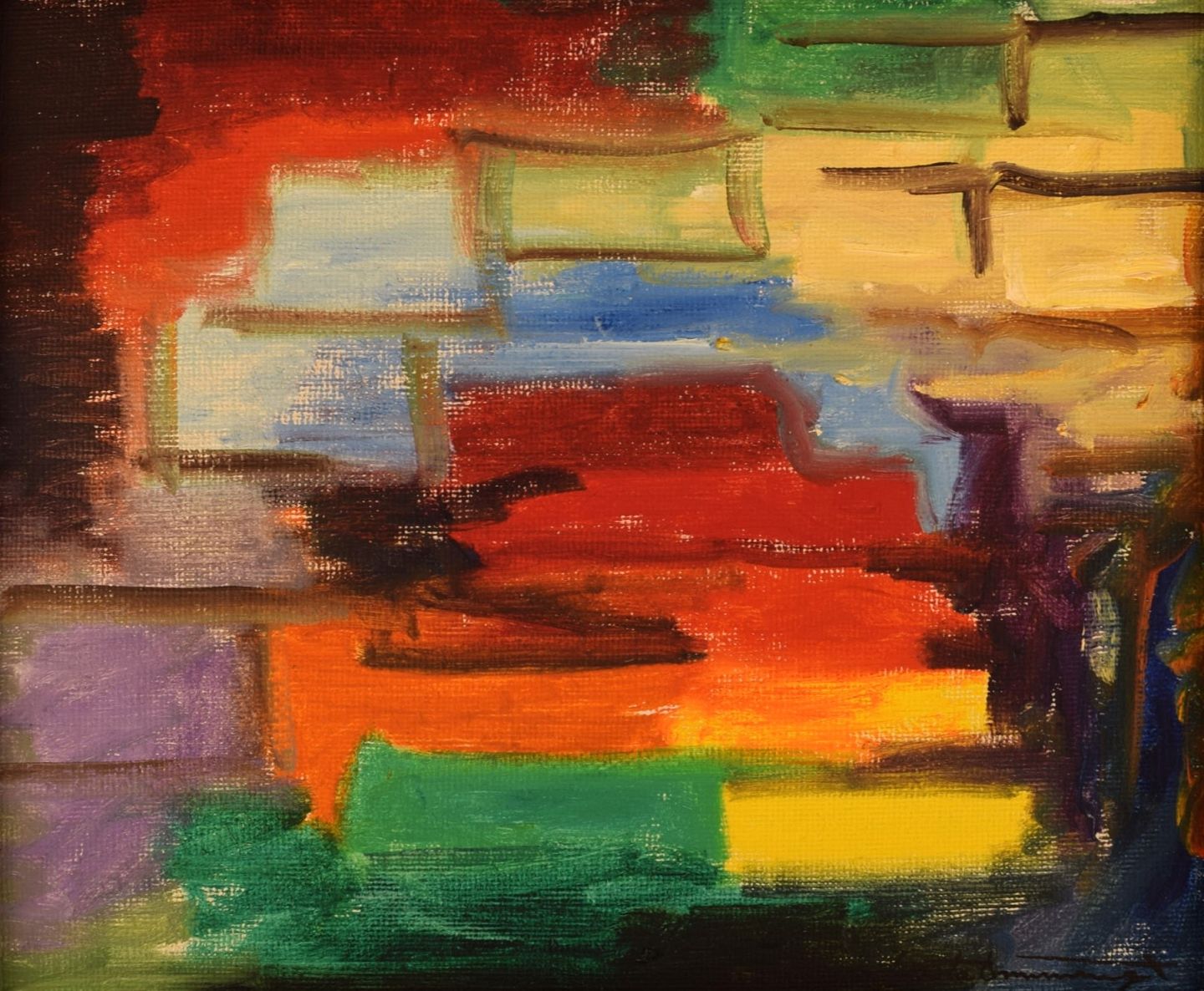 Gösta Emming, Svensk kunstner. Olie på lærred. Modernistisk komposition med felter i forskellige farver. 1960/70'erne. Lærredet måler: 40 x 33 cm. Rammen måler: 2,5 cm. Signeret. I flot stand.
