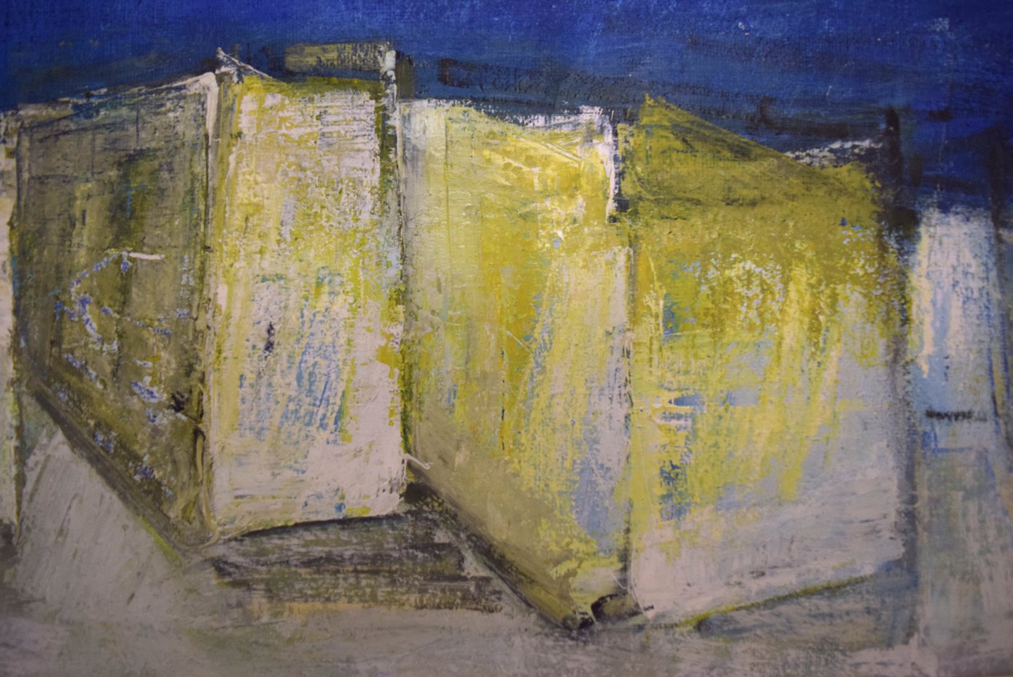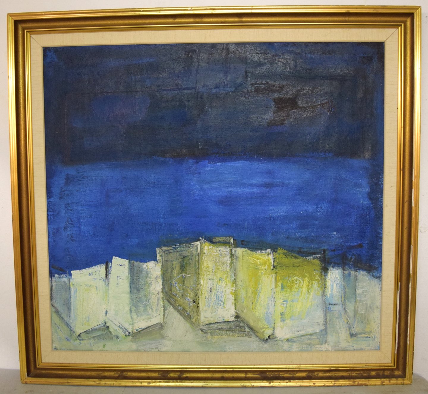 Pär Lindblad (b. 1907, d. 1981), Swedish artist. Modernist landscape. Oil on canvas. 1960's.