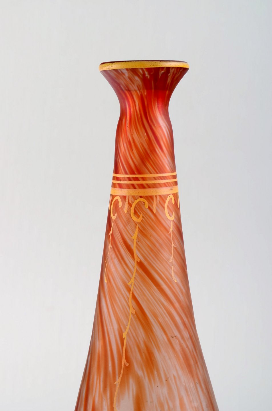 Legras, Frankrig. To vaser i mundblæst kunstglas med gulddekoration. Ca. 1930. Måler: 26 x 8,5 cm. I flot stand. Signeret.
