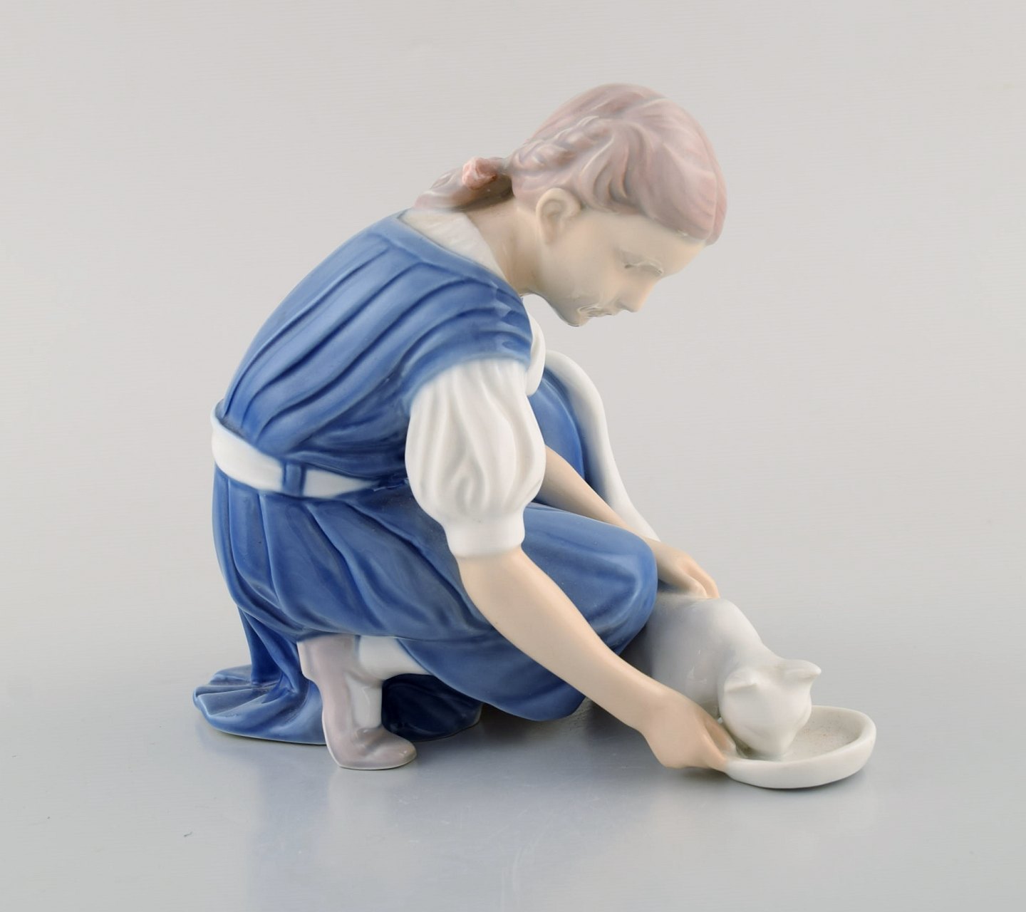 Bing & Grøndahl porcelænsfigur. Pige med kat. 1920/30'erne. Modelnummer: 1745. Måler: 15,5 x 13,5 cm. I flot stand. Stemplet. 1. Sortering.