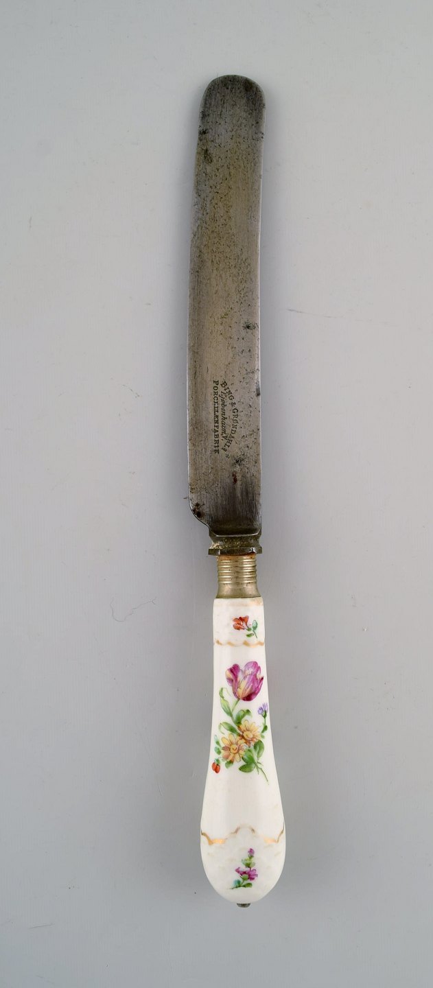 B&G, Bing & Grøndahl saksisk blomst. Sæt på 8 antikke store middagsknive.