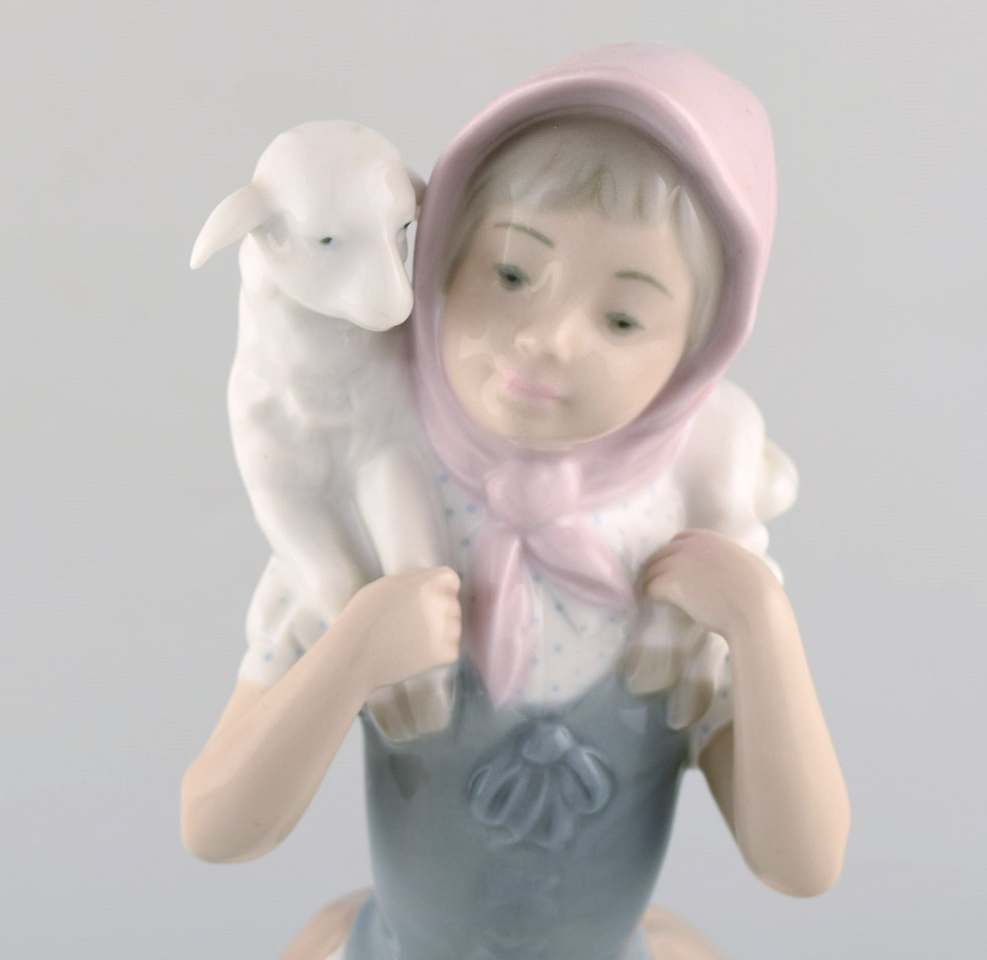 Lladro og Nao, Spanien. Tre porcelænsfigurer. Unge piger. 1980'erne. Største måler: 23,5 x 22 cm. I flot stand. Stemplet.