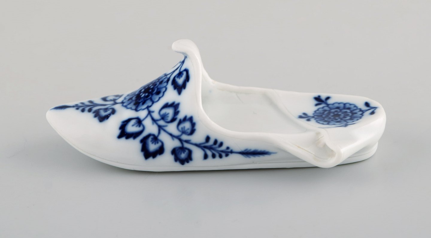 Meissen, Tyskland. Antik miniature slipper i håndmalet porcelæn. 1800-tallet. Måler: 9,5 x 3,5 cm. I flot stand. Stemplet.
