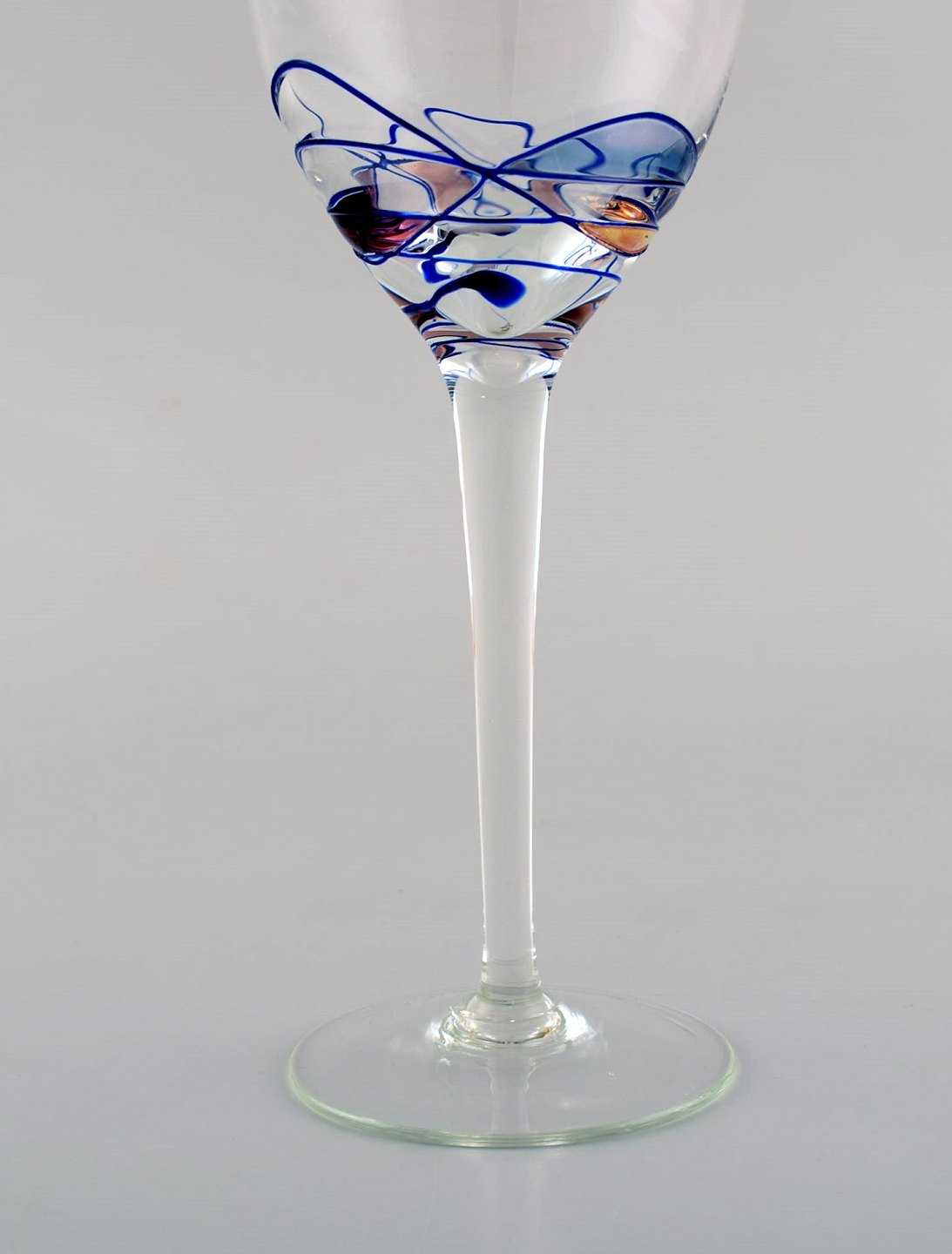 Papillon / Casa Grande, Tiffany. Fire mundblæste vinglas. 1980'erne. Måler: 21,2 x 7,5 cm. I flot stand.