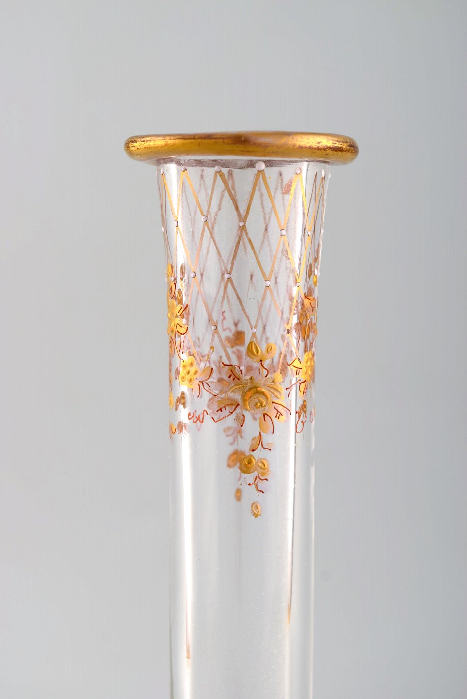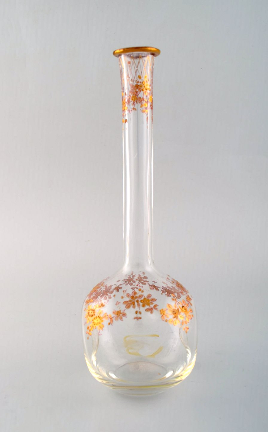 Et par mundblæste vaser i kunstglas med håndmalede blomster i guld. Baccarat stil. Ca. 1900.