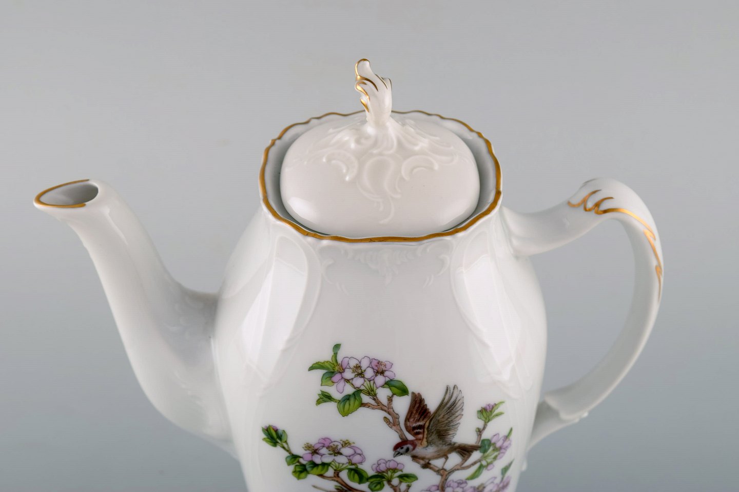 Sjældent Royal Copenhagen "Forår" kaffeservice til seks personer i porcelæn med motiver af fugle og bladværk. Stelnummer: 1533. 1980'erne.