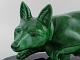 Paul Milet for Sevres, Frankrig. Stor art deco ræv i glaseret keramik. Smuk grøn glasur. 1920'erne.
