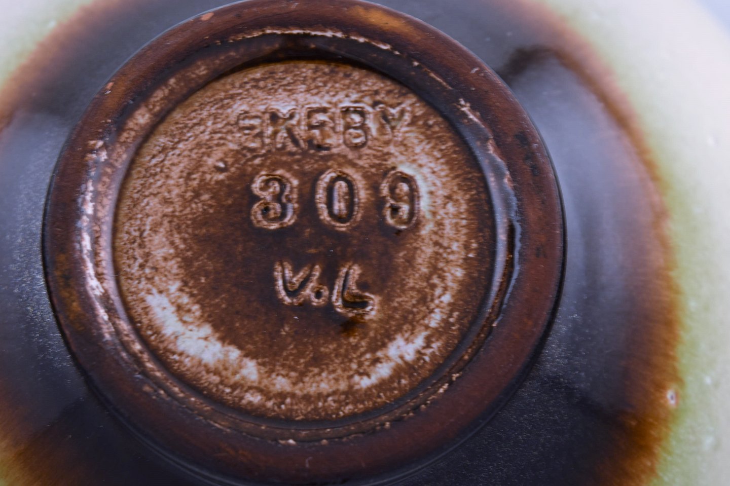 Vicke Lindstrand for Upsala-Ekeby. Skål i glaseret keramik. Smuk glasur i røde og sand nuancer. Midt 1900-tallet.