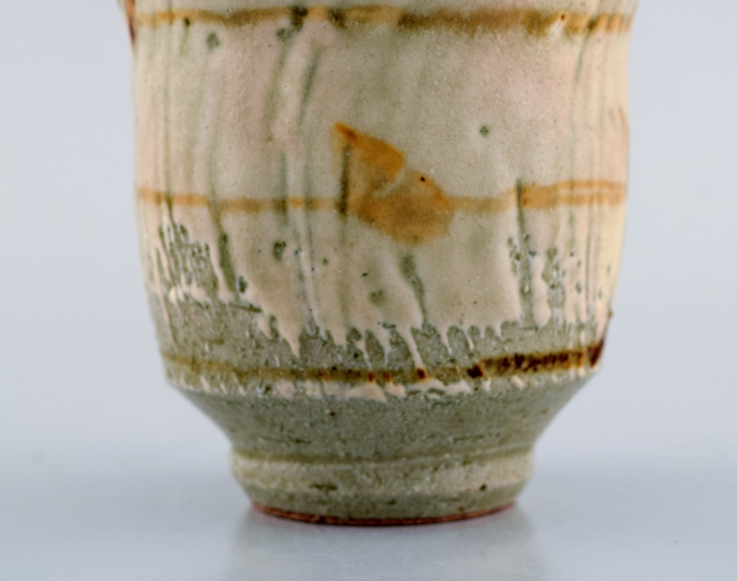 Takashi Ohyoma, Japan. Unika bæger i glaseret keramik. 1980'erne. Måler: 8,5 x 8,5 cm. I flot stand.