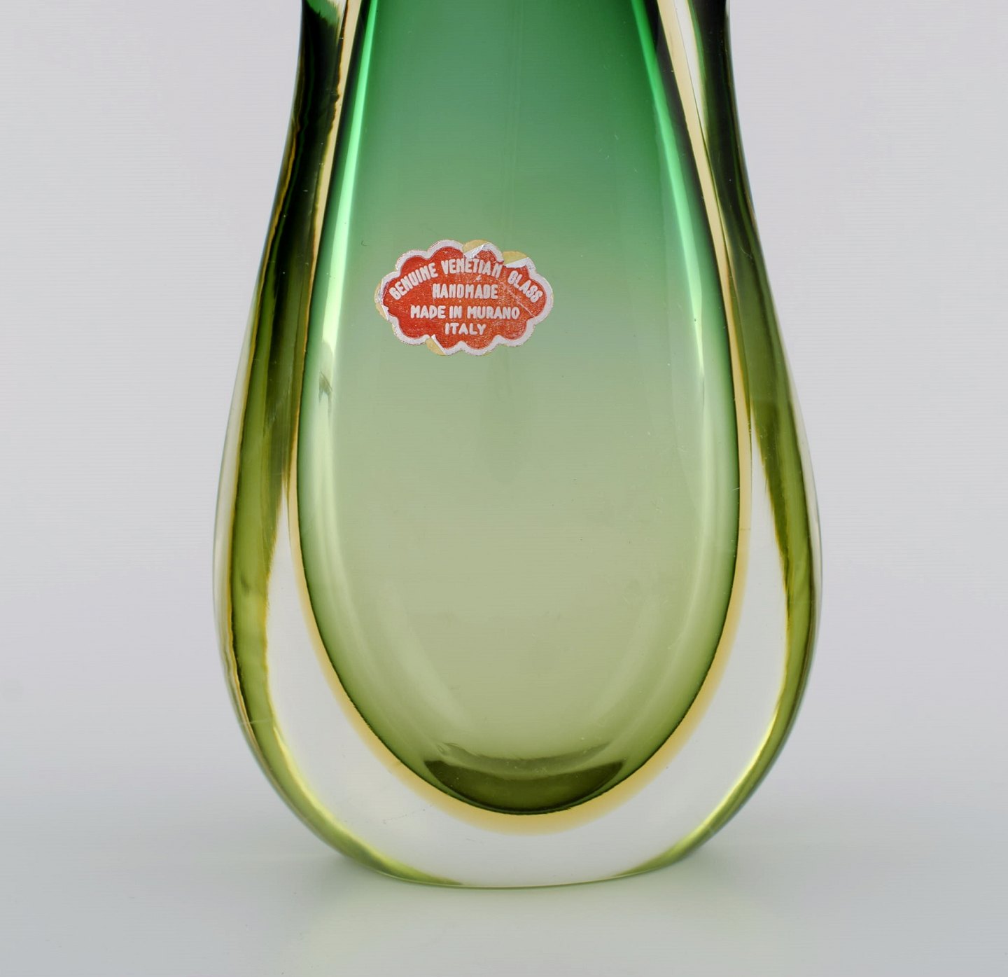 Stor Murano vase i grønt og klart mundblæst kunstglas. Italiensk design, 1960'erne.