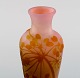 Antik Emile Gallé vase i matteret kunstglas med ravfarvet overfang udskåret med motiver i form af blomster og bladværk. Tidligt 1900-tallet. Måler: 21 x 5,5 cm. I flot stand. Signeret.