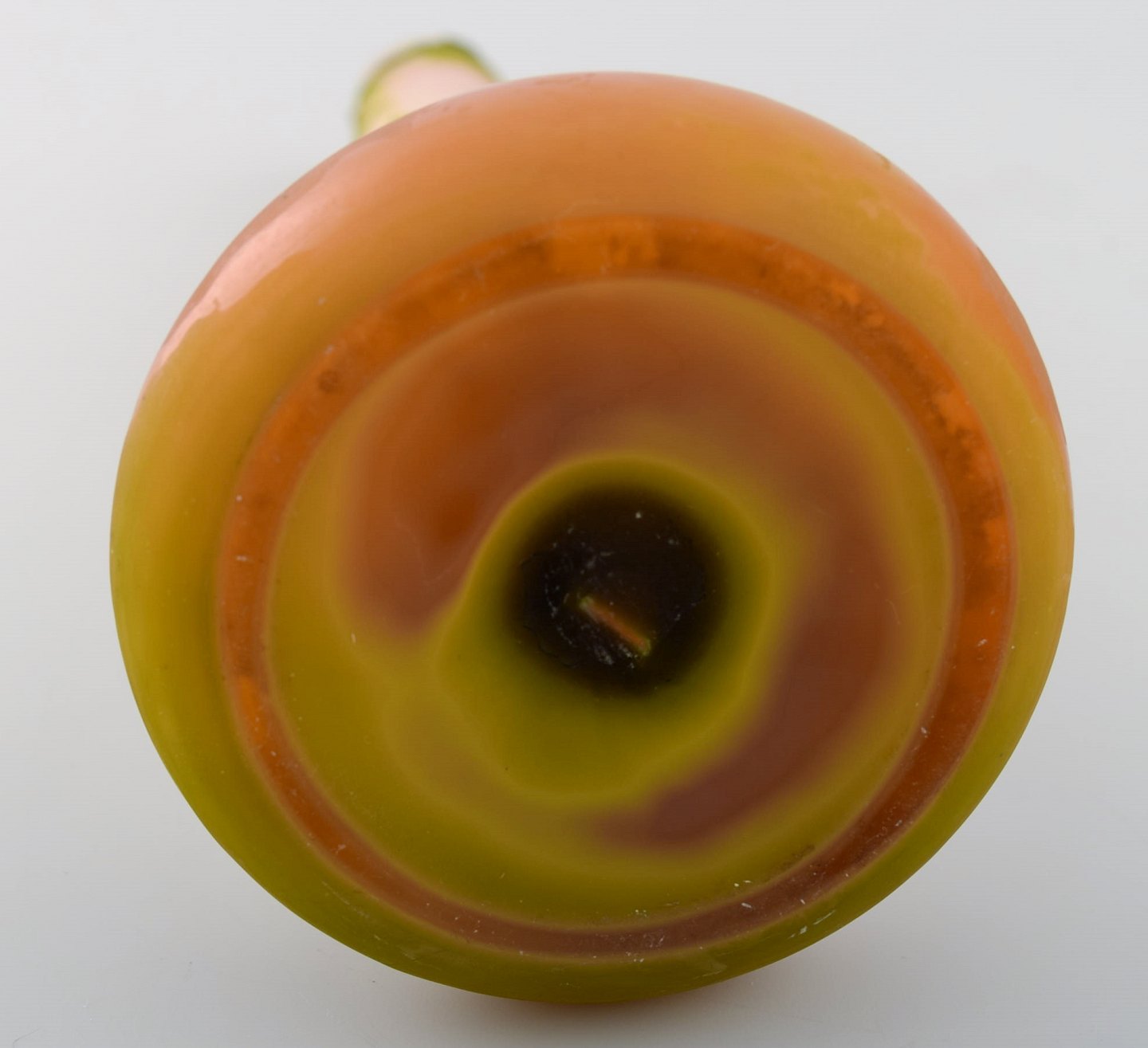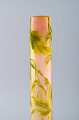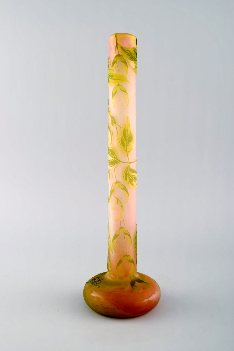 Tidlig Emile Gallé vase i matteret kunstglas med grønt overfang udskåret med motiver i form af bladværk. Ca. 1900. Måler: 29 x 8,5 cm. I flot stand. Signeret.
