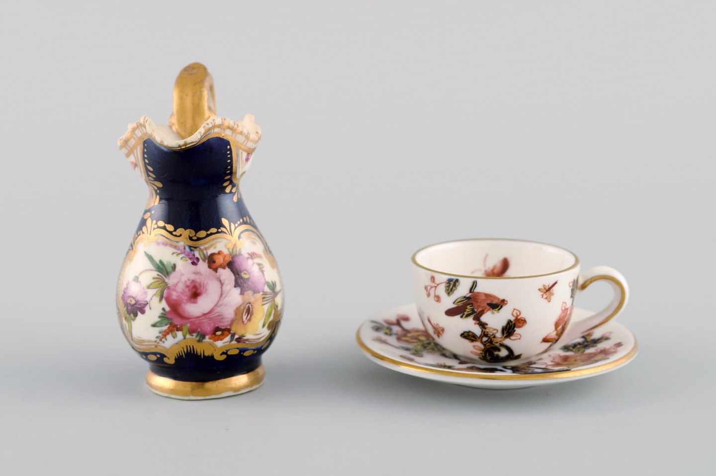 Chamberlain Worcester m.fl. Seks antikke miniaturer i håndmalet porcelæn. 1800-tallet. Kanden måler: 6,5 x 4,5 cm. Spanden måler: 5,3 x 5 cm. I flot stand. Nogle stemplet.