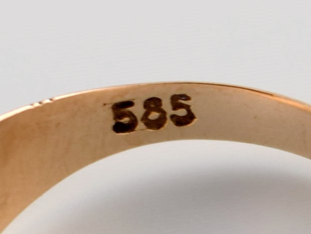 Vintage art deco ring i 14 karat guld prydet med kulturperle. 1940'erne. Diameter: 17 mm. I flot stand. Stemplet. I de fleste tilfælde kan vi mod et gebyr (kr. 300) pr ring, få ændret størrelsen.