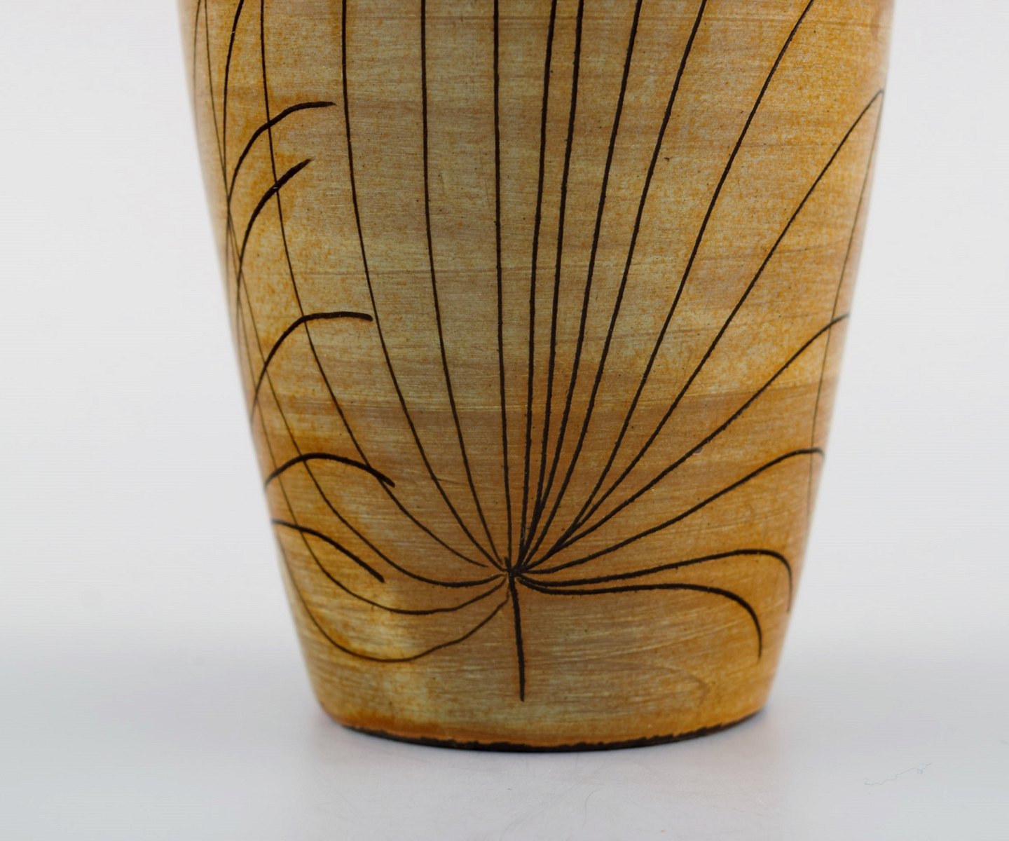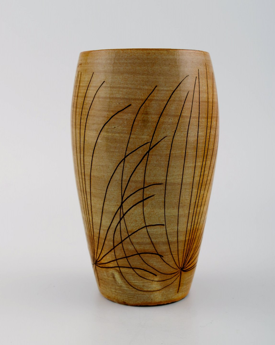 Ingrid Atterberg for Upsala Ekeby. Papyrus vase i glaseret stentøj. Midt 1900-tallet. I flot stand. Måler: 15 x 9,5 cm. Stemplet.