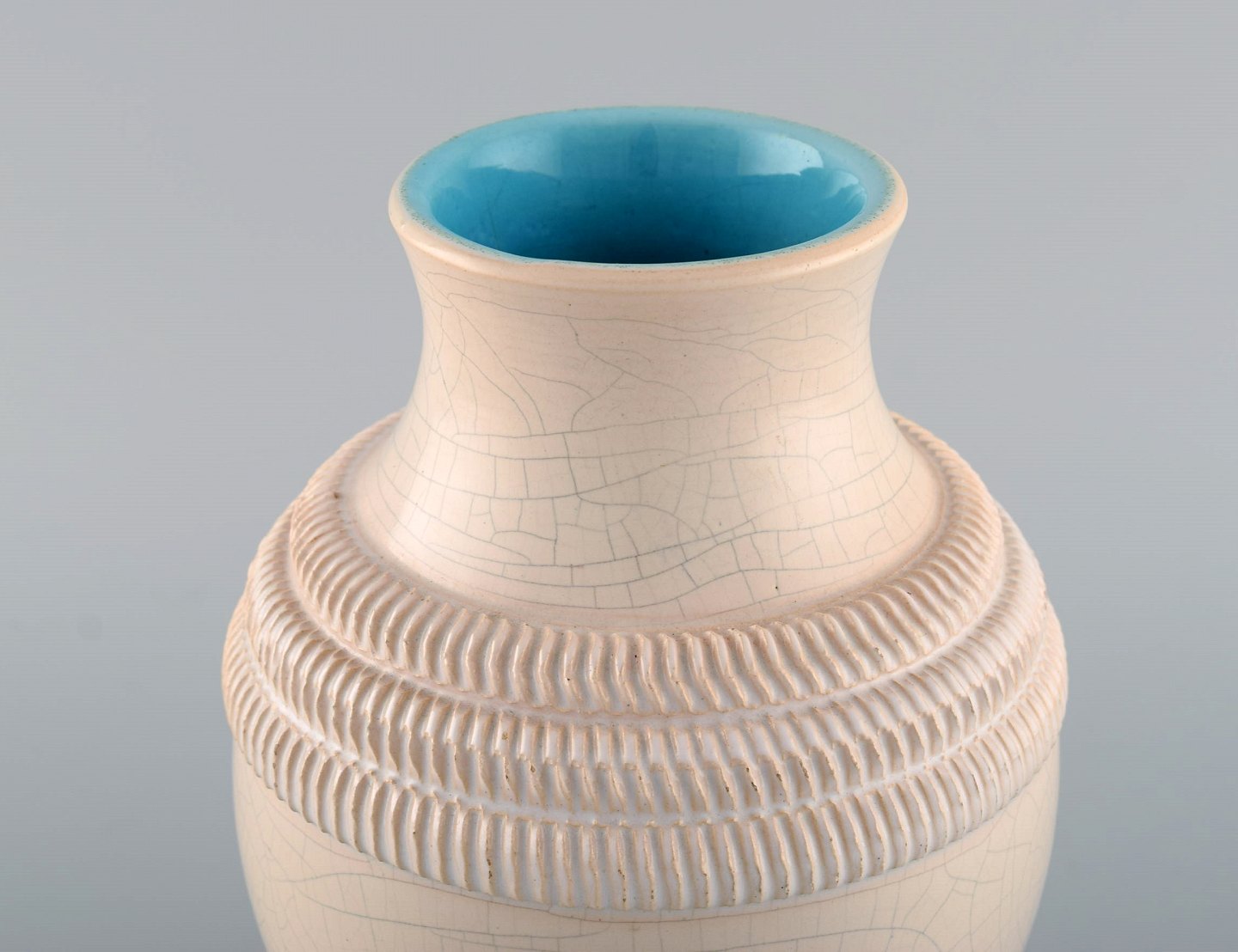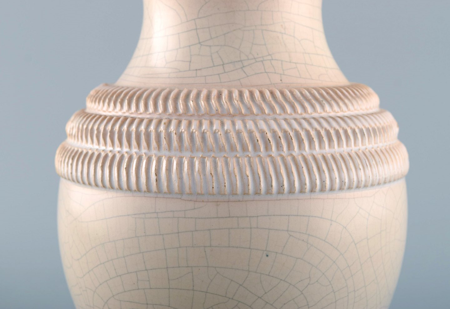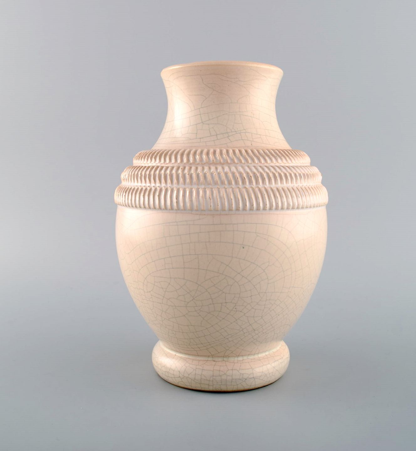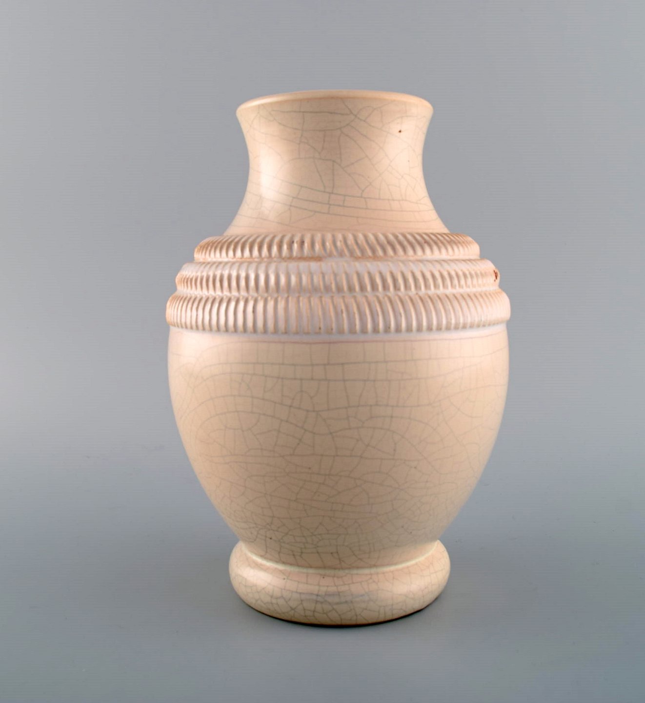 Pol Chambost (1906-1983), Frankrig. Vase i glaseret keramik. Smuk krakkeleret glasur i sandnuancer. 1930'erne. Måler: 21 x 15,5 cm. I flot stand. Stemplet.