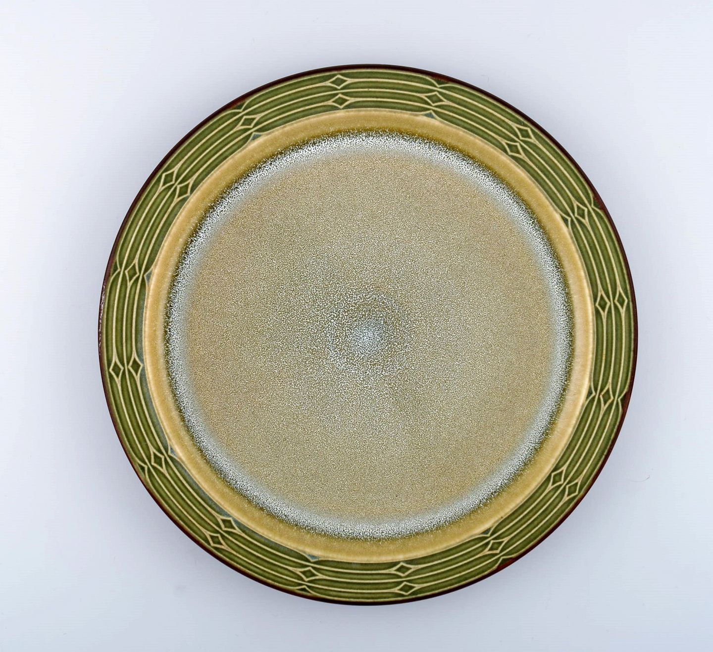 Jens H. Quistgaard (1919-2008) for Bing & Grøndahl. Stort rundt "Rune" fad i glaseret stentøj. To stk på lager.