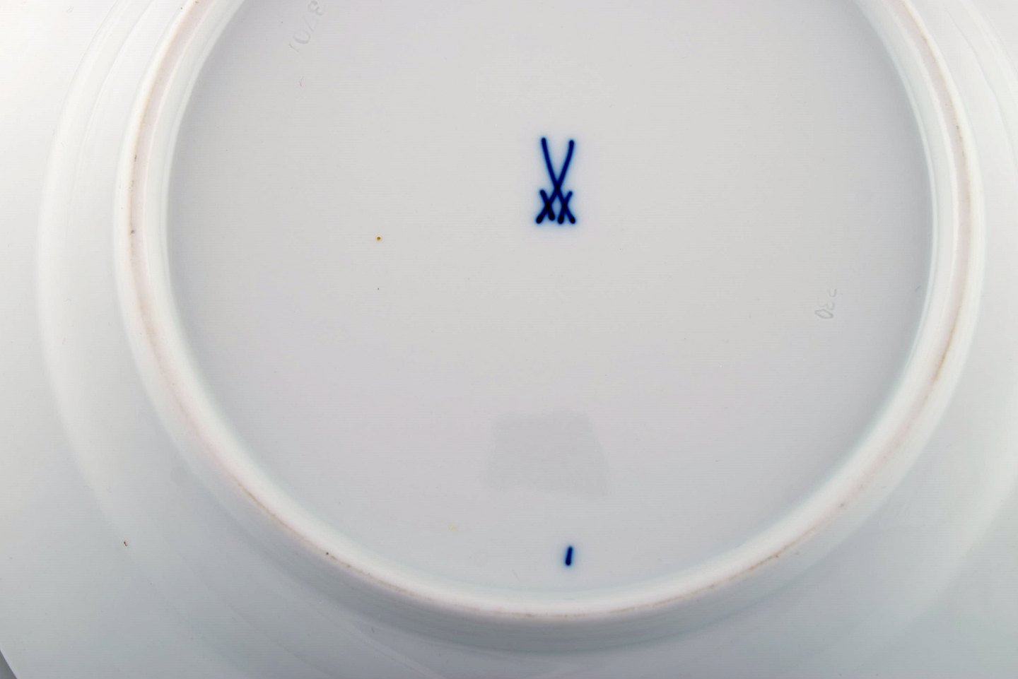 Seks Meissen middagstallerkener i porcelæn med blomster og bladværk i relief og gulddekoration. 1900-tallet.