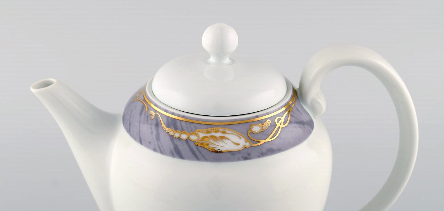 Royal Copenhagen Grå Magnolia. Komplet kaffeservice til 12 personer i porcelæn. Sent 1900-tallet.